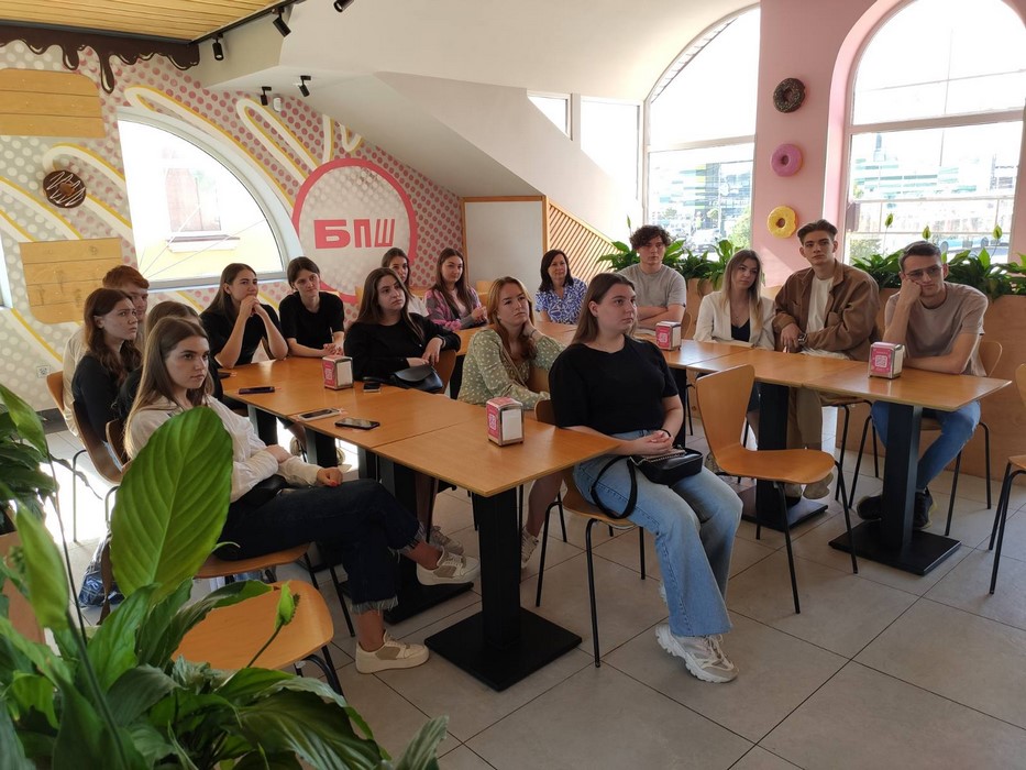 Зарічнюк Антон, співвласник та операційний керуючий рестораном «БПШ», розповів учасникам зустрічі про започаткування та розвиток закладу, концепцію його діяльності та особливості меню. Наголосив, що започаткування власного ресторанного бізнесу є непростою справою, поділився набутим досвідом, здобутками та помилками, з якими довелося зіткнутися в процесі відкриття та перших місяців роботи закладу.