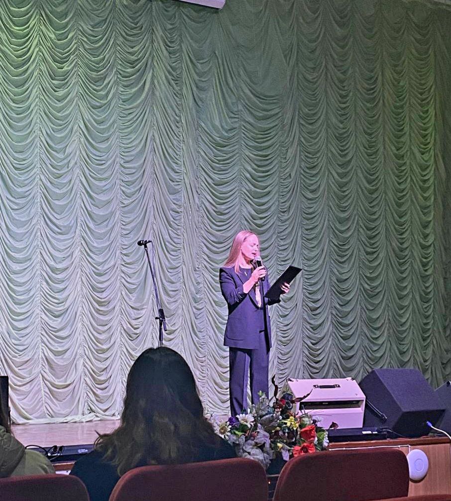 На захід завітала і завідуюча відділом обслуговування бібліотеки Олена Літвінова, яка розповіла про важливість спілкування українською мовою та історію виникнення Дня української писемності .