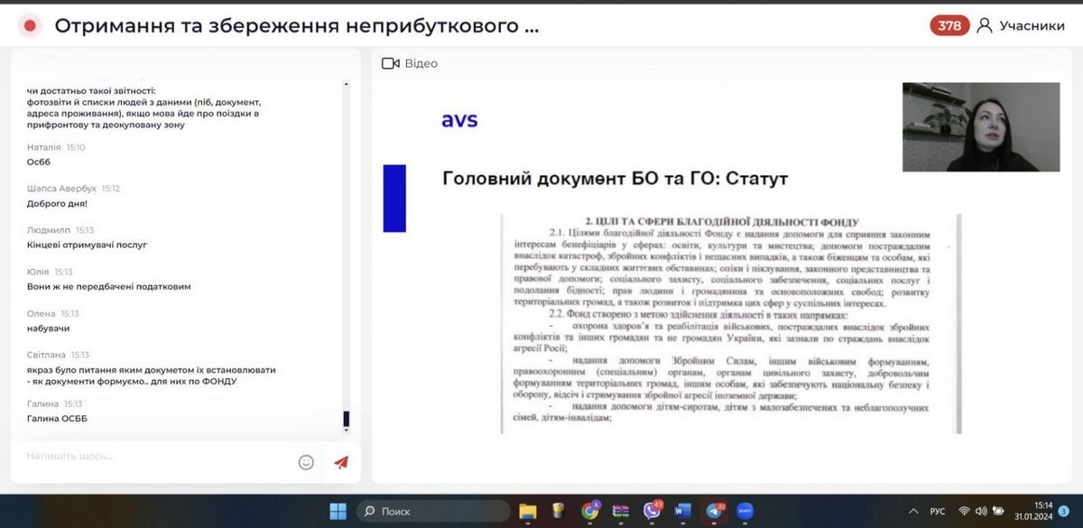Під час вебінарів познайомилися з особливостями закриття року та річною звітністю неприбуткової організації, особливостями документального оформленням співпраці з волонтерами.