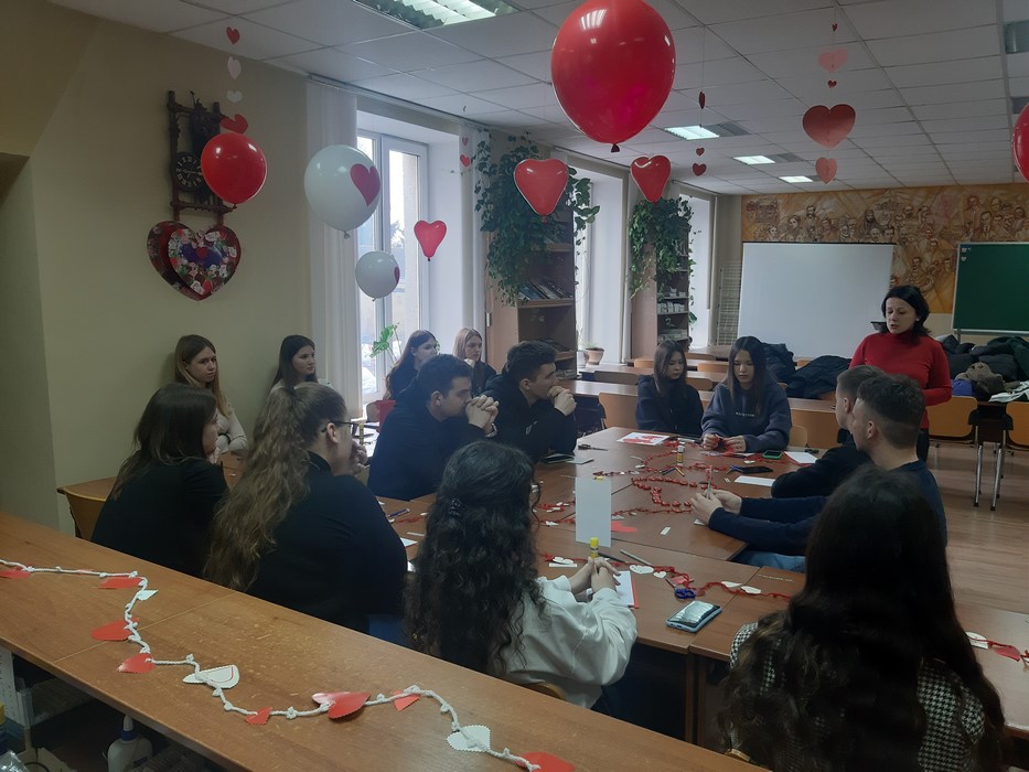 12 лютого 2024 року, напередодні Дня святого Валентина, співробітники бібліотеки ВТЕІ ДТЕУ Олена Літвінова та Юлія Лащенко провели майстер-клас з виготовлення валентинок для студентів ФТМСО груп ТР-11д, ПТ-11д. Учасники заходу творчо підійшли до створення вітальних листівок. Кожна робота набула своєї неповторності, здобувачі вищої освіти намагалися втілити власні фантазії, зробити виріб особливим. Виготовлення оригінальних валентинок дозволило проявити креативність, сприяло святковому настрою. Майстер-клас пройшов у дружній та теплій атмосфері.
