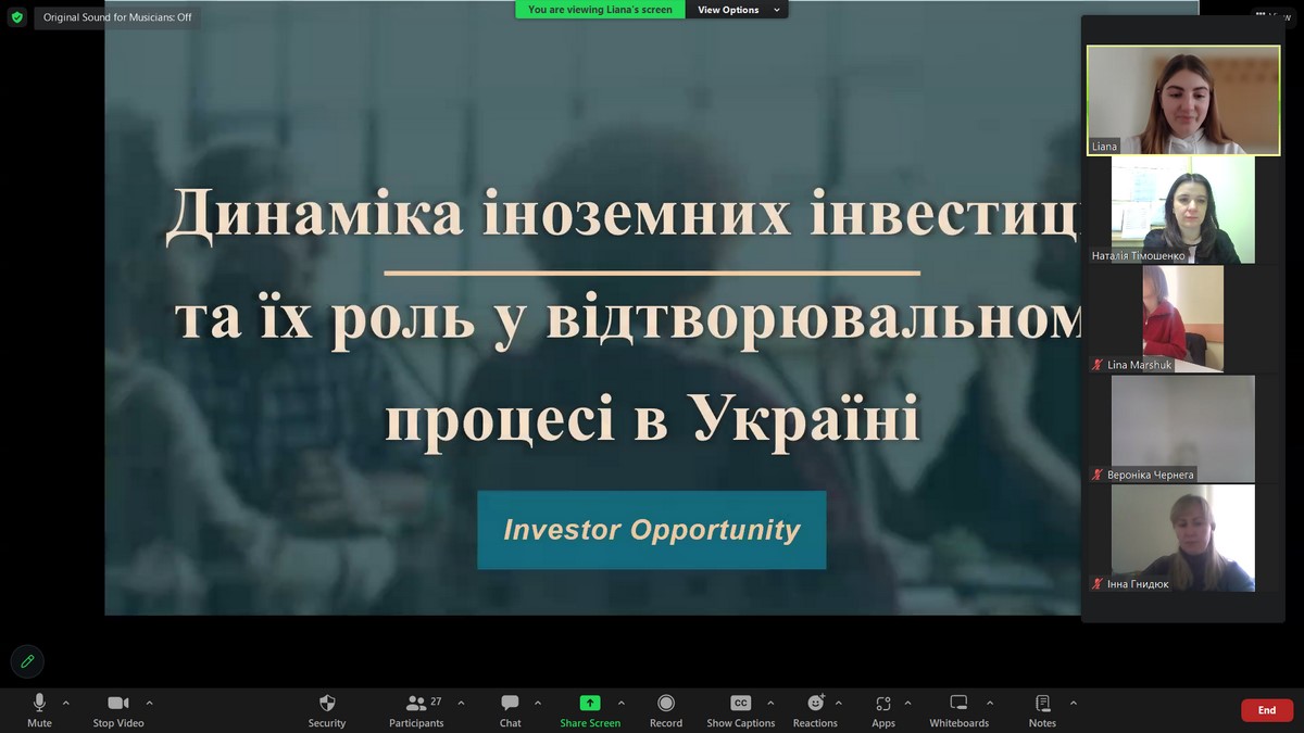 Засідання наукового гуртка «Сучасна фінансова політика України: проблеми та перспективи» на тему «Проблеми та перспективи залучення іноземних інвестицій в Україну»