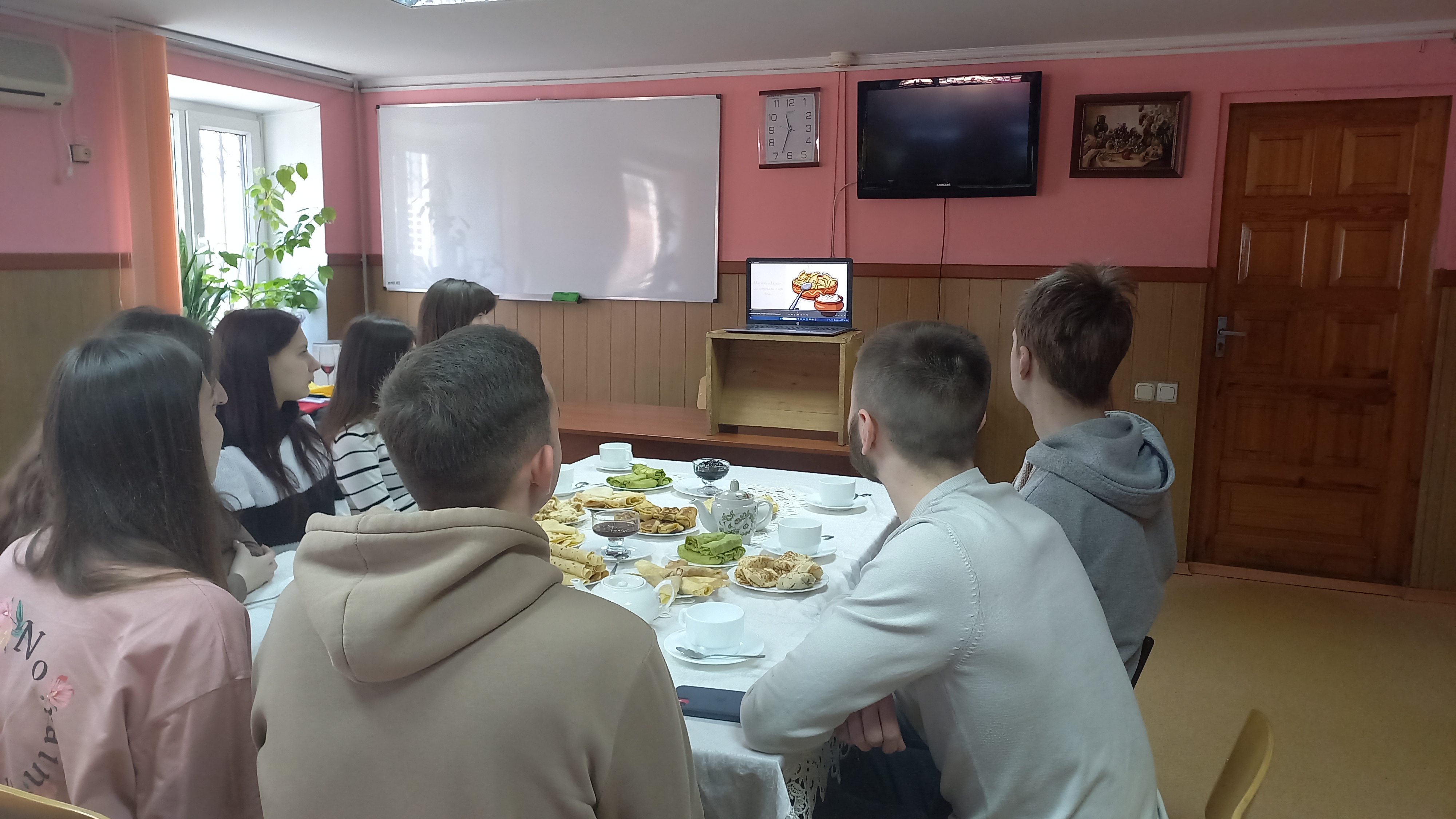 Присутні на заході студенти виступили з тематичними доповідями та презентаціями про історію походження свята та особливості його святкування, а також рецептами приготування головного смачного атрибуту свята – млинців.