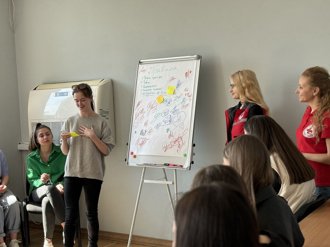 Також волонтерка напрямку Інформаційний менеджмент та Гуманістична освіта Кушнір Надія розповіла про напрями діяльності для волонтерів серед яких: надання першої допомоги, інформаційна діяльність, мобілізація ресурсів, банк одягу, пункт прокату реабілітаційної техніки, та гуманістична освіта і запропонувала бажаючим долучитися до роботи Українського Червоного Хреста.