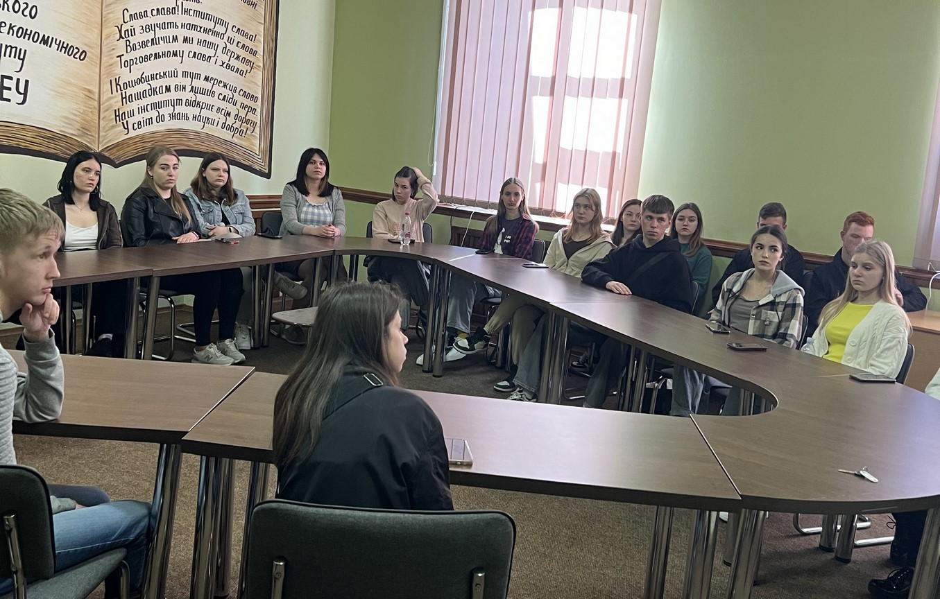 12 квітня 2024 року для здобувачів вищої освіти в рамках тижня факультету торгівлі, маркетингу та сфери обслуговування, проведено виховний захід «СЛАВА ЗСУ». Гостем заходу був Зелений Юрій, старший інструктор відділення рекрутингу та комплектування Вінницького ОМТЦК.