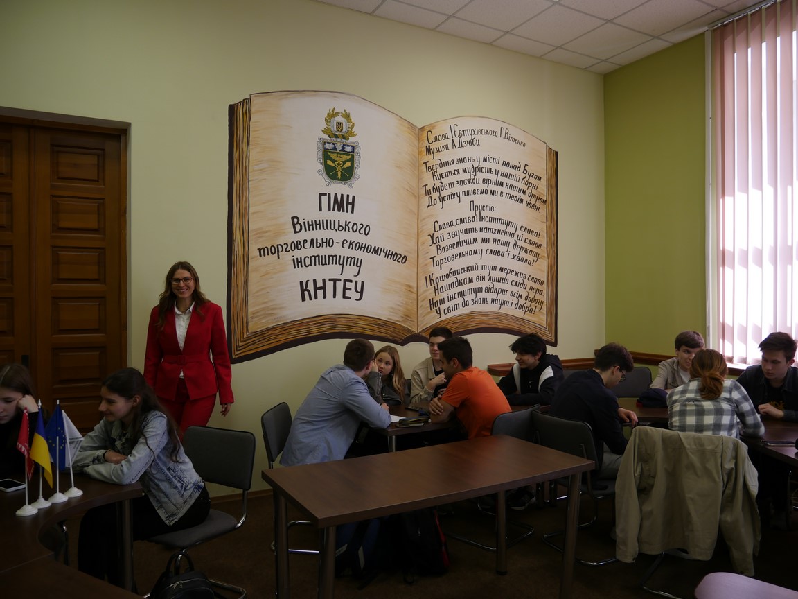 29 квітня 2024 року у Вінницькому торговельно-економічному інституті ДТЕУ, в межах дії Меморандуму про співпрацю між закладами освіти, відбулась лекція для учнів 10-В класу комунального закладу «Вінницький ліцей №4», які вивчають курс за вибором «Соціальне шкільне підприємництво».