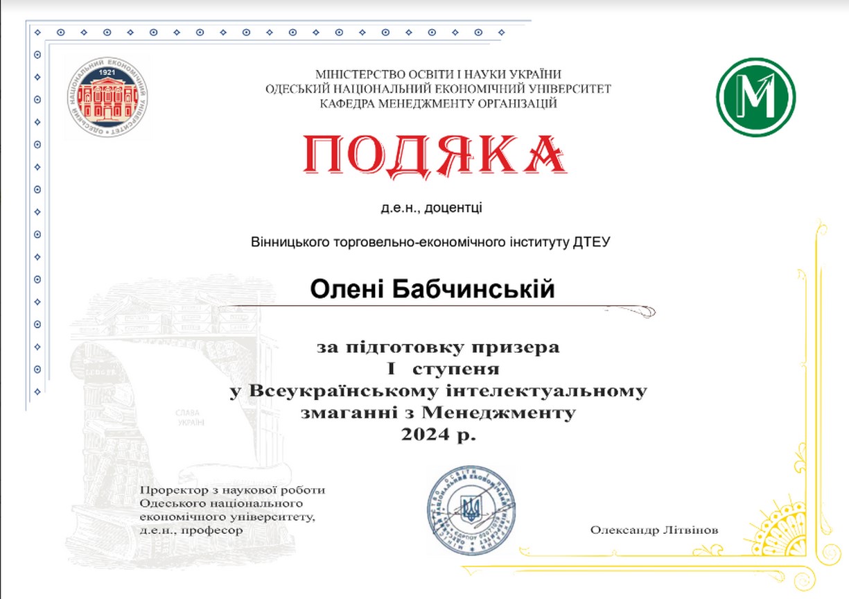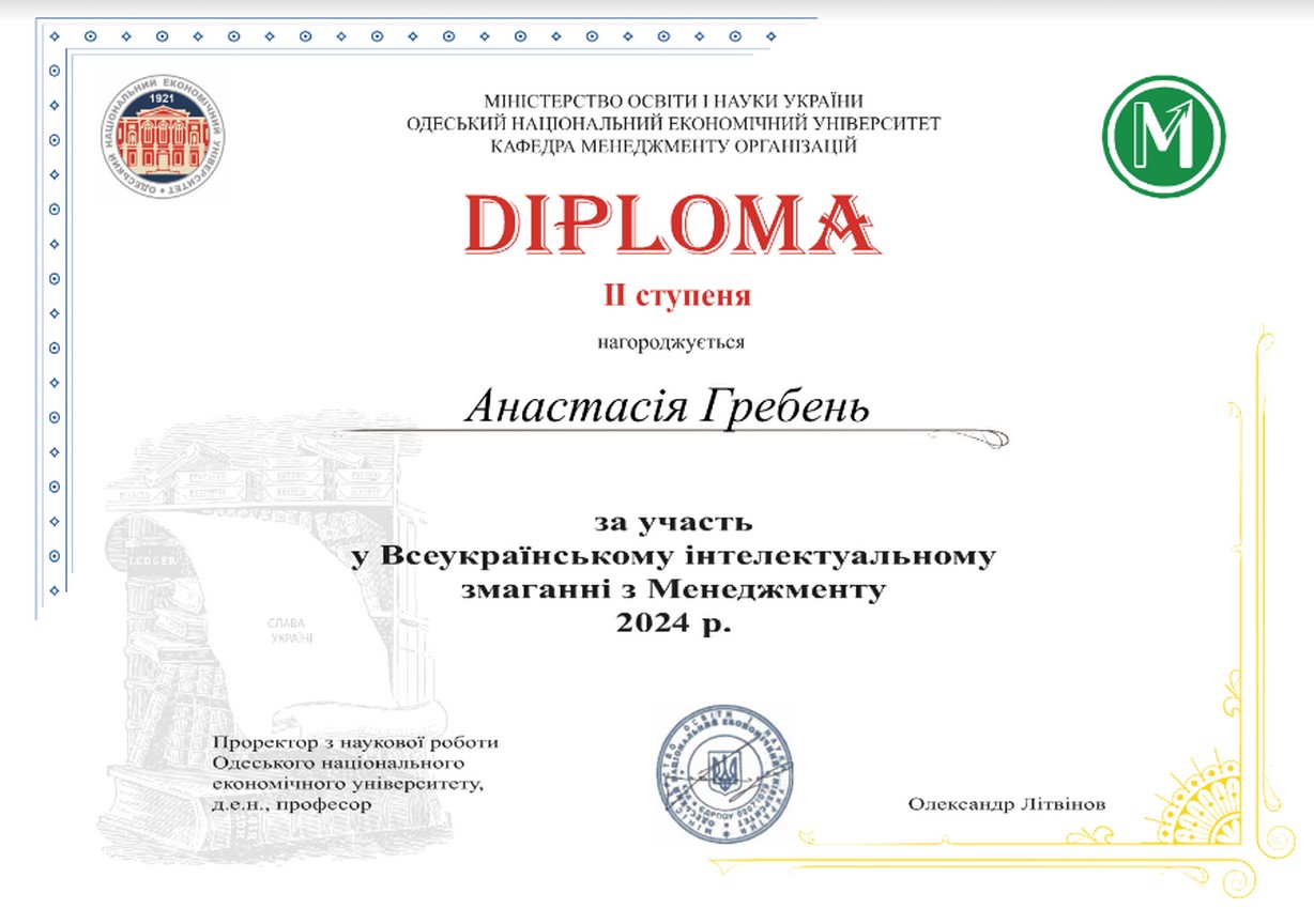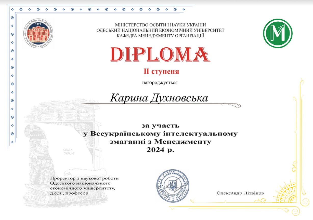 Всеукраїнське інтелектуальне змагання серед студентів, які навчаються за спеціальністю 073 «Менеджмент», у 2024 році проведено на базі Одеського національного економічного університету.