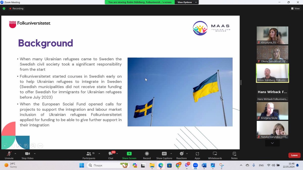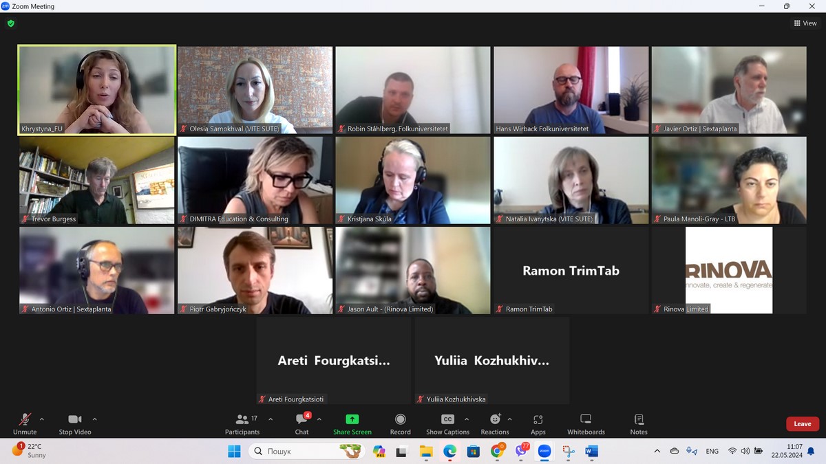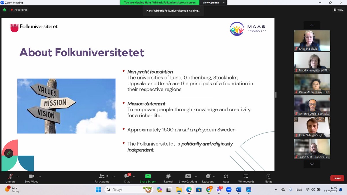 22 травня 2024 року в рамках реалізації проєкту ВТЕІ ДТЕУ Erasmus + MAAS “Match, Attach and Sustain: New methods for Europe`s Job Brokers” відбулася шоста онлайн зустріч, організаторами якої були партнери проєкту Folkuniversitetet (Швеція).