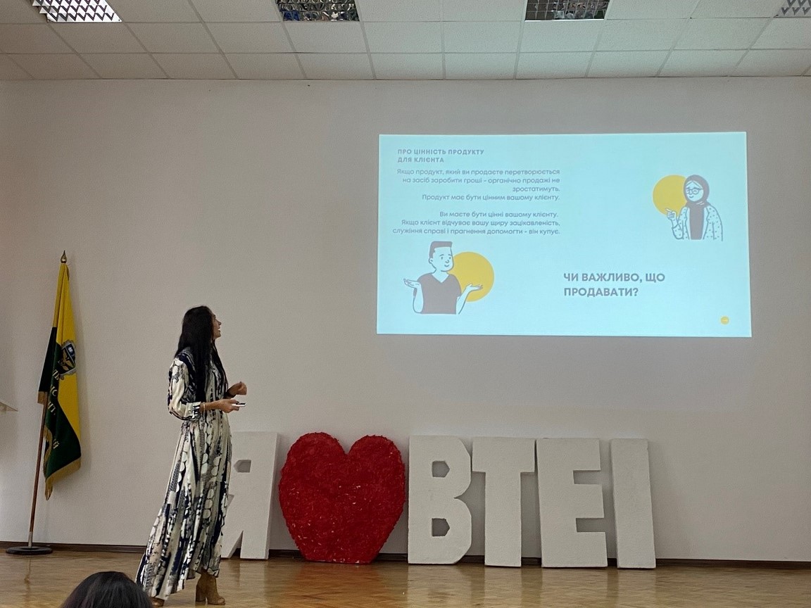 Анель наголосила на важливості розуміння того, що продажі – це не лише процес обміну продукту на гроші, але й формування довгострокових відносин з клієнтами. Було розглянуто воронку продажів, етапи та особливостями кожного з них, що дозволить майбутнім фахівцям будувати ефективні стратегії продажів у майбутньому.