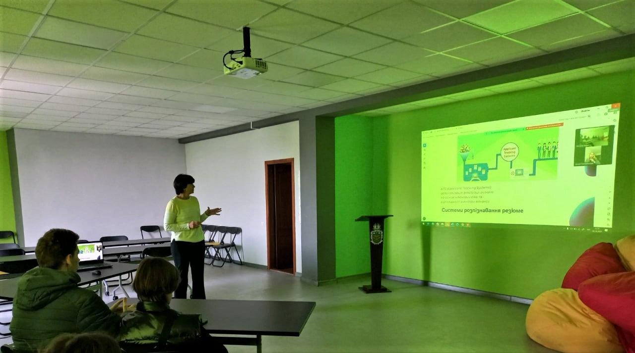 Доповнила тему Анна Станішевська, яка розповіла про інструменти штучного інтелекту в роботі рекрутера, зокрема, його використання в контексті таргетингу та SMM. Цікавим для всіх було те, як АІ розпізнає та аналізує для оцінки та фільтрації резюме (на прикладі Applicant Tracking Systems). Студенти мали змогу ознайомитись з кращими кейсами рекрутерських компаній, які використовували AI для таргетингу кандидатів. Особливий інтерес викликали інструменти для створення контенту, що приваблює цільову аудиторію (приклади: Hootsuite, Buffer з елементами AI). Не залишила байдужими здобувачів інформація про сучасні виклики та етику використання АІ, питання конфіденційності даних та дискримінації в процесі відбору кандидатів.