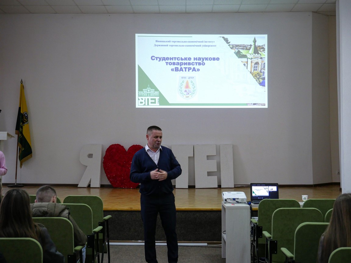 09 жовтня 2024 року СНТ «ВАТРА» спільно із відділом наукової роботи та міжнародної співпраці провели три освітніх заходи-зустрічі із студентами перших курсів всіх факультетів Вінницького торговельного економічного інституту ДТЕУ. Мета зустрічей полягала в ознайомленні першокурсників з науковою складовою освітньої діяльності в інституті та популяризації дотримання академічної доброчесності в студентському середовищі.