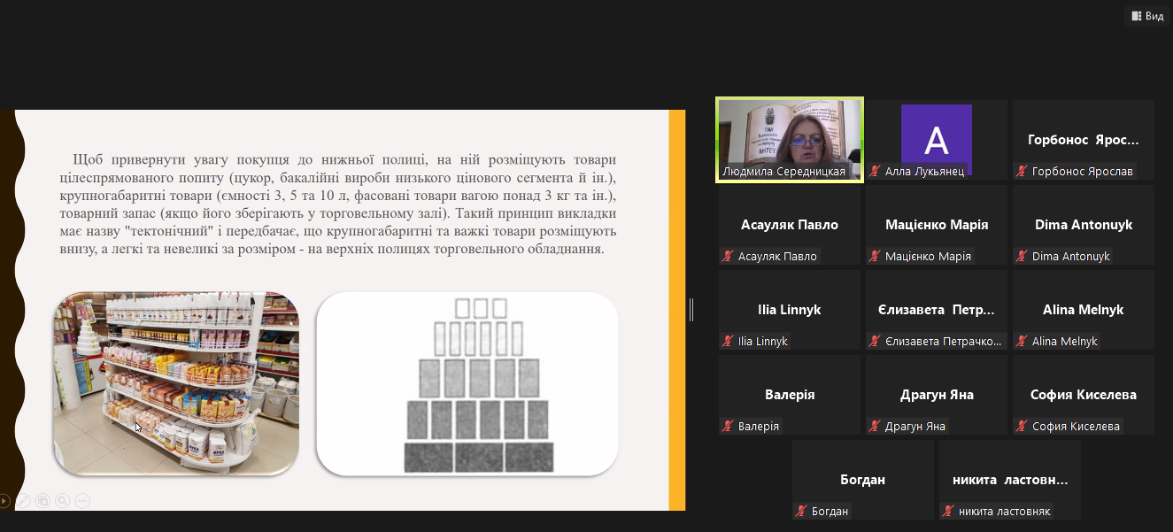 Учасники отримали унікальну можливість ознайомитись з правилами показу та сучасними дієвими методами розміщення та викладки товарів у торговельному залі, що впливають на прийняття рішення потенційним споживачем щодо придбання товару. Захід сприяв формуванню свідомої поведінки учнів як потенційних покупців про сучасний ефективний мерчандайзинг через форми, обʼєми та композиції у викладанні товару задля збільшення обсягів продажу магазину.