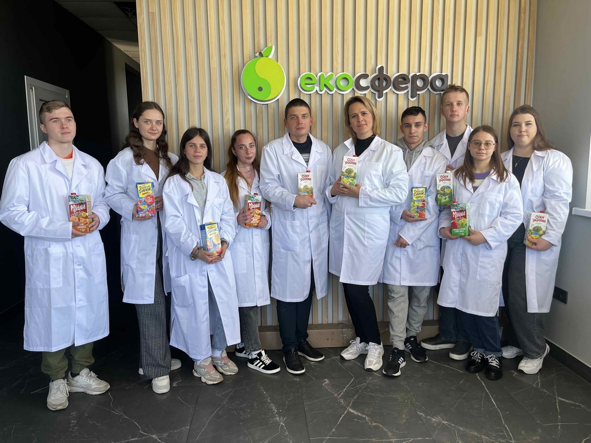 Здобувачі вищої освіти мали можливість ознайомитися з виробничими потужностями підприємства ТОВ «Еко-сфера», яке є один із небагатьох виробників соків в Україні, що налагодило повний виробничий цикл, від переробки первинної сировини до доставки продукції споживачеві, працює виключно з добірною сировиною, вирощеною українськими фермерами, та виробляє продукцію без консервантів, відповідно до вимог стандарту ISO 14024.
