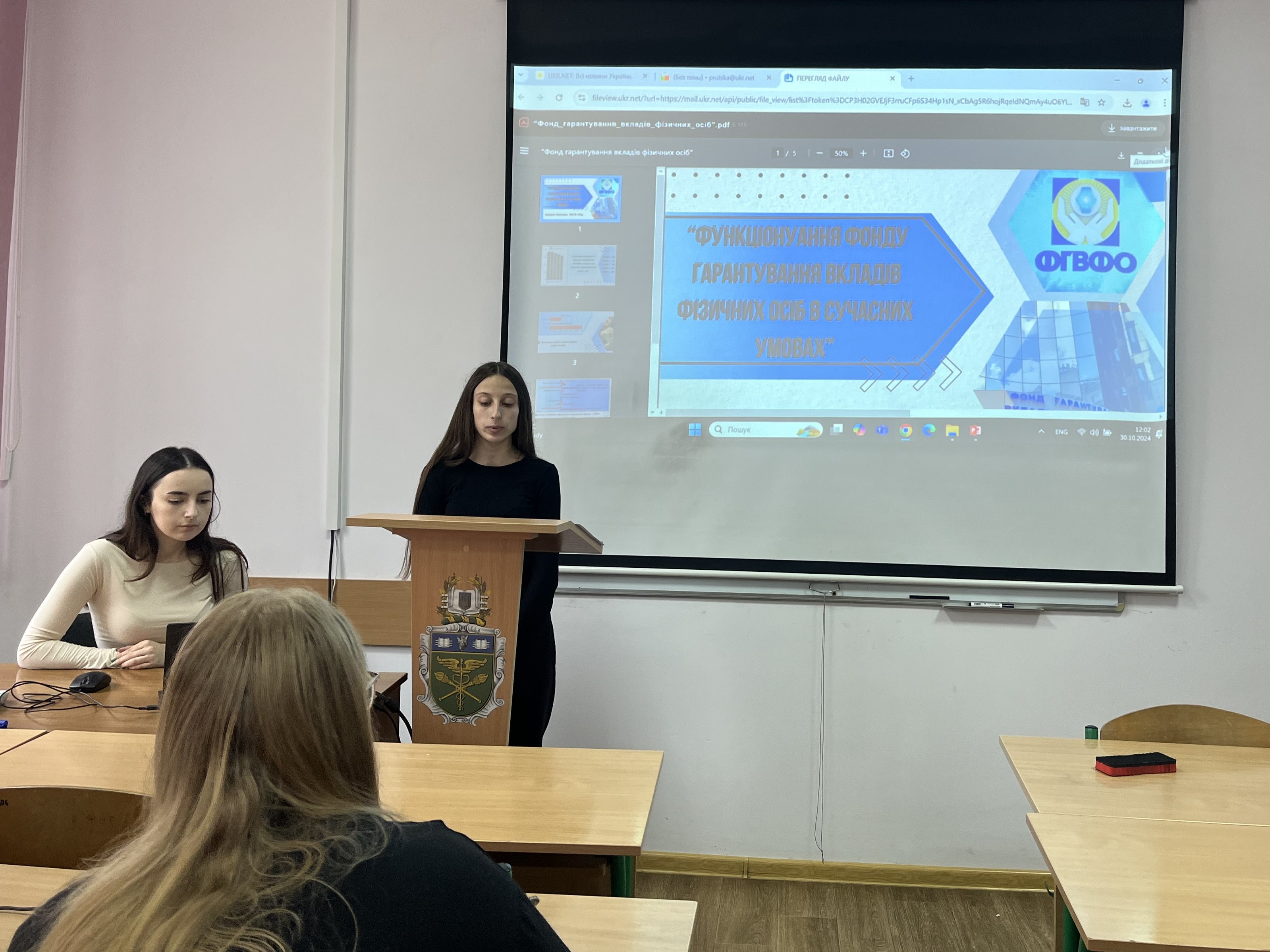 Під час засідання з доповідями виступили здобувачі вищої освіти спеціальностей «Фінанси, банківська справа та страхування» ОС «бакалавр»: