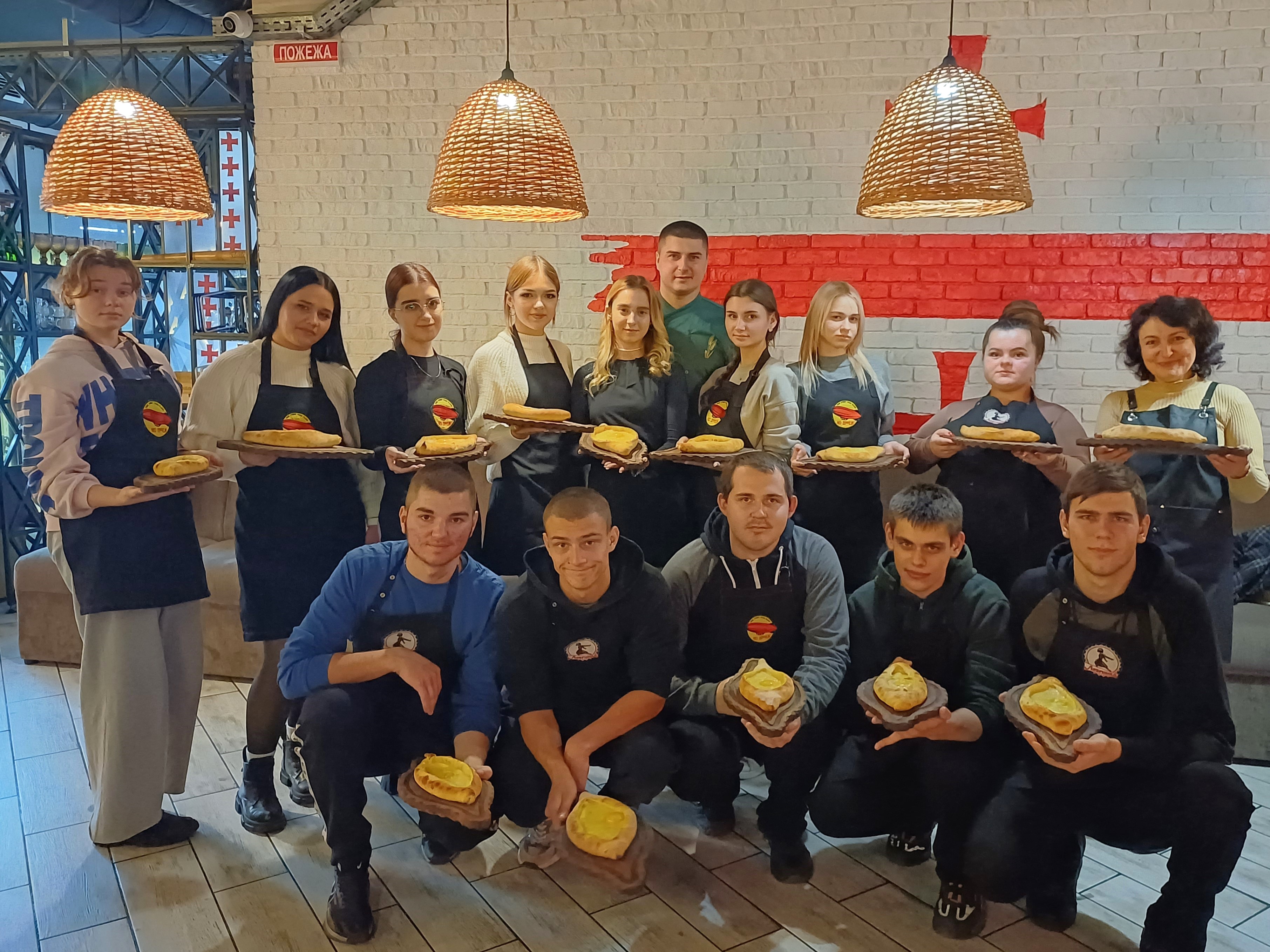 Учасники майстер-класу мали можливість відчути властивості особливого тіста та під керівництвом шеф-кухаря Андрія власними руками сформувати ідеальний «човник» з двома видами сиру – бринзою і сулугуні. Здобувачі дізналися особливості технологічного процесу приготування та випікання хачапурі, а після того, як страву дістали з печі, отримали можливість продегустували її.