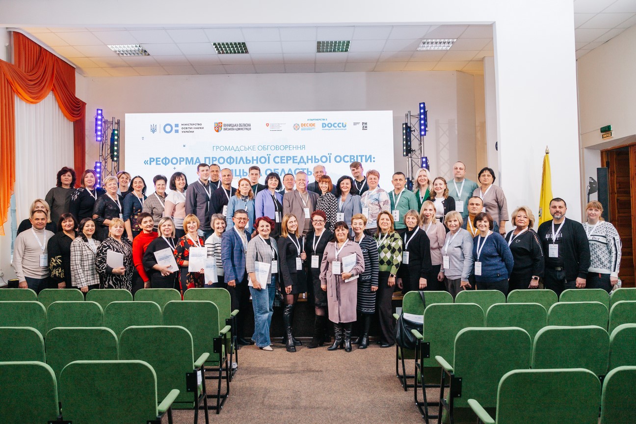 14 листопада 2024 року Міністерство освіти і науки України в партнерстві зі Швейцарсько-українським проєктом DECIDE — «Децентралізація для розвитку демократичної освіти» та за сприяння Вінницької ОВА організували громадське обговорення «Профільної» — реформи старшої школи та особливостей її впровадження у Вінницькій області. Обговорили передумови впровадження реформи, суть та цілі реформи, приділивши особливу увагу врахуванню регіональних особливостей та потреб територіальних громад для формування ефективної мережі закладів профільної середньої освіти, а також моделі фінансування та управління такою мережею.