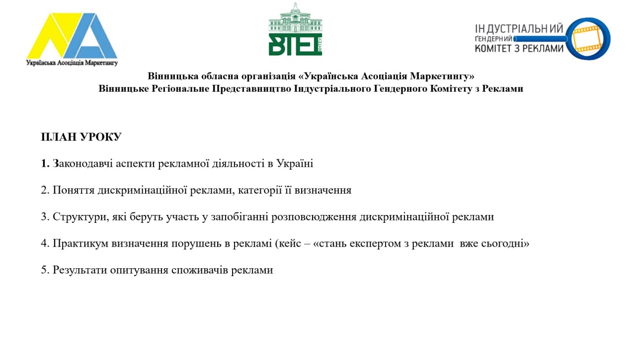 Для учнів 10-В класу КЗ «Вінницький ліцей №4» у рамках вивчення предмету «Соціальне шкільне підприємництво» було проведено майстер-клас «Дискримінаційна реклама»