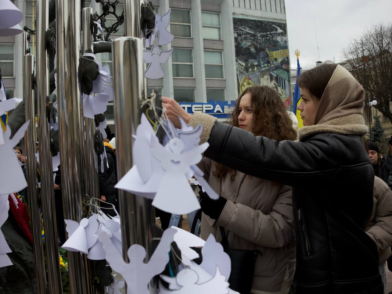 20 лютого 2025 р. о 12:00 на площі Героїв Небесної Сотні біля скульптурної композиції «Дерево Свободи» відбулась тиха акція «Ангели памʼяті», до якої долучились студенти Вінницького торговельно-економічного інституту ДТЕУ.