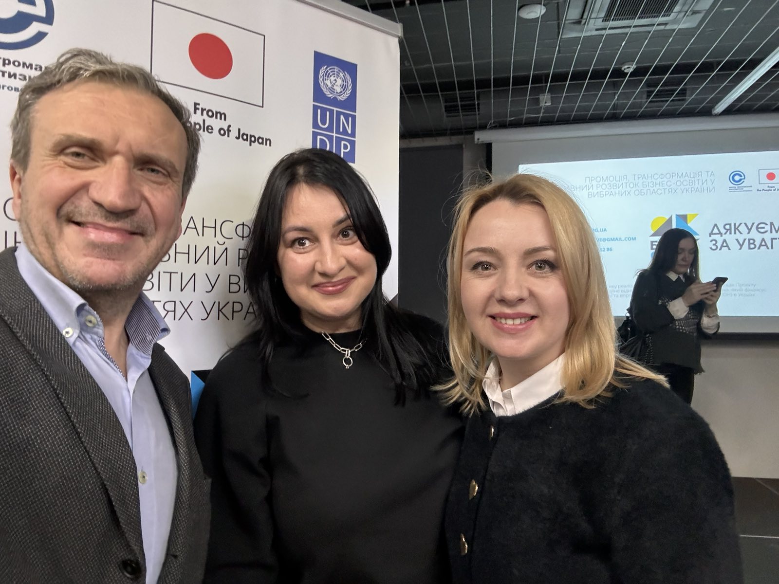 В рамках ініціативи, яку реалізує Центр громадської експертизи в межах проєкту «Трансформаційне відновлення задля безпеки людей в Україні», що фінансується урядом Японії і впроваджується Програмою розвитку ООН (ПРООН) в Україні сьогодні заступник директора з навчально-виховної роботи Юрчик Ірина та завідувач кафедри економіки та міжнародних відносин Валентина Хачатрян взяли участь у заході, присвяченому розвитку бізнес-освіти в Україні!
