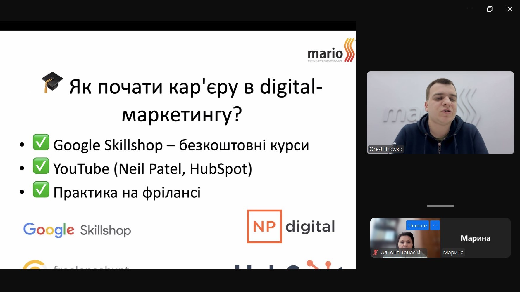 Відбулося засідання Бізнес-школи ВТЕІ ДТЕУ з Орестом Бровком, Digital-маркетологом компанії Mario