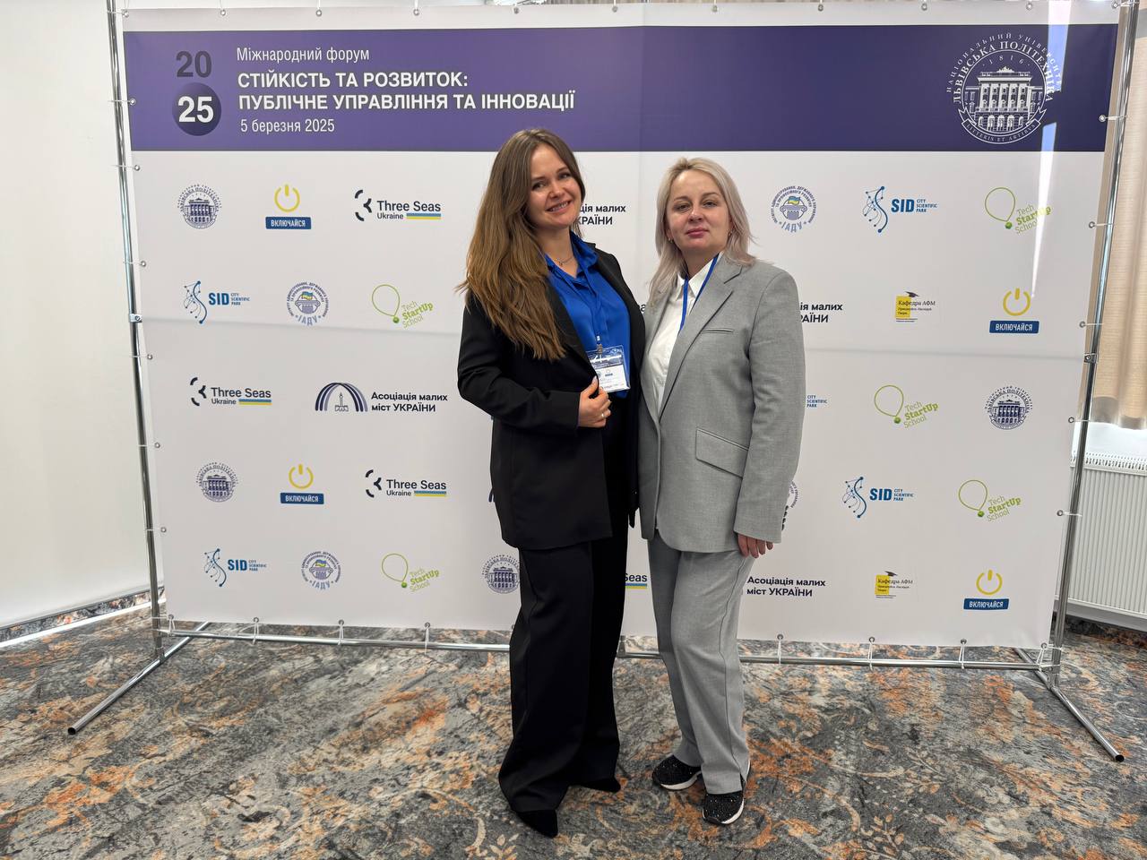 Зокрема, завідувачка кафедри Наталя Махначова обговорила деталі майбутньої співпраці з координатором Центру освіти, інновацій та передачі знань Університету Ігнатіанум у Кракові Сташеком Альвасяком. Крім того, поділилась досвідом та обговорила перспективи якісної підготовки публічних управлінців в сучасних умовах із Ганною Комарницькою, завідувачкою кафедри публічного адміністрування та управління бізнесом Національного університету ім. Івана Франка, і Тарасом Кіцаком, заступником директора з науково-педагогічної роботи Інституту адміністрування, державного управління та професійного розвитку Національного університету «Львівська політехніка». Гарант ОП «Публічне управління та адміністрування» Ірина Ніколіна та асистент кафедри Віта Бондар зазначили, що даний форум закцентував увагу на важливості відкритих даних, успішних кейсах та сталому відновленні громад. Це дає змогу постійно оновлювати зміст освітніх компонентів, що викладаються на кафедрі.