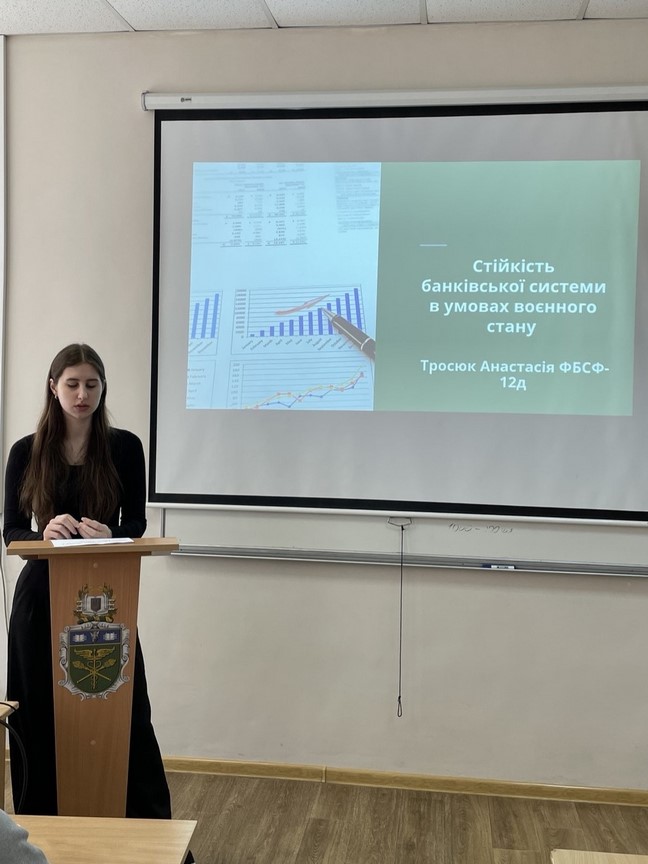 Тросюк Анастасія, доповідь на тему «Стійкість банківської системи в умовах воєнного стану» (ФБСФ-12д).