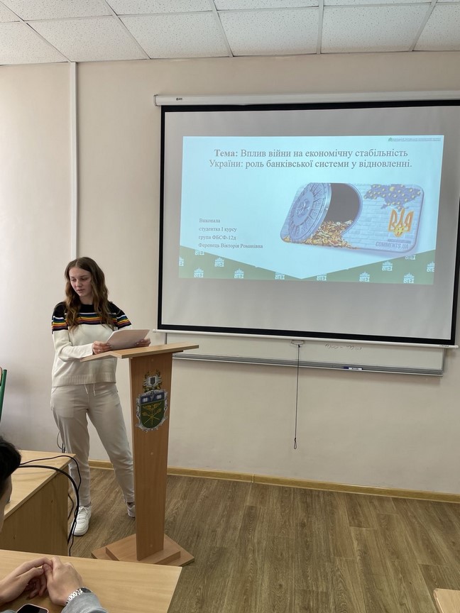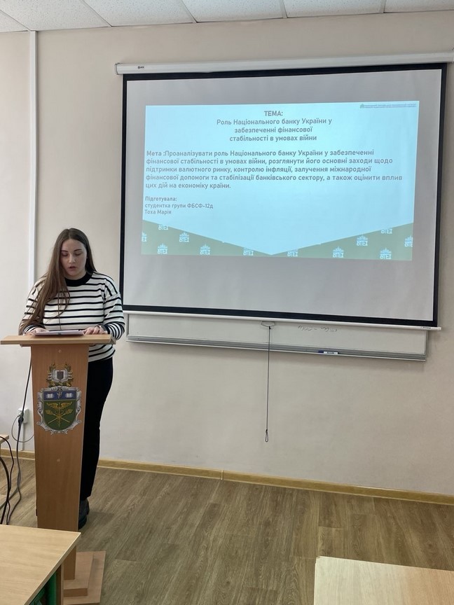 Тоха Марія, доповідь на тему «Роль НБУ у забезпеченні фінансової стабільності в умовах війни» (ФБСФ-12д);