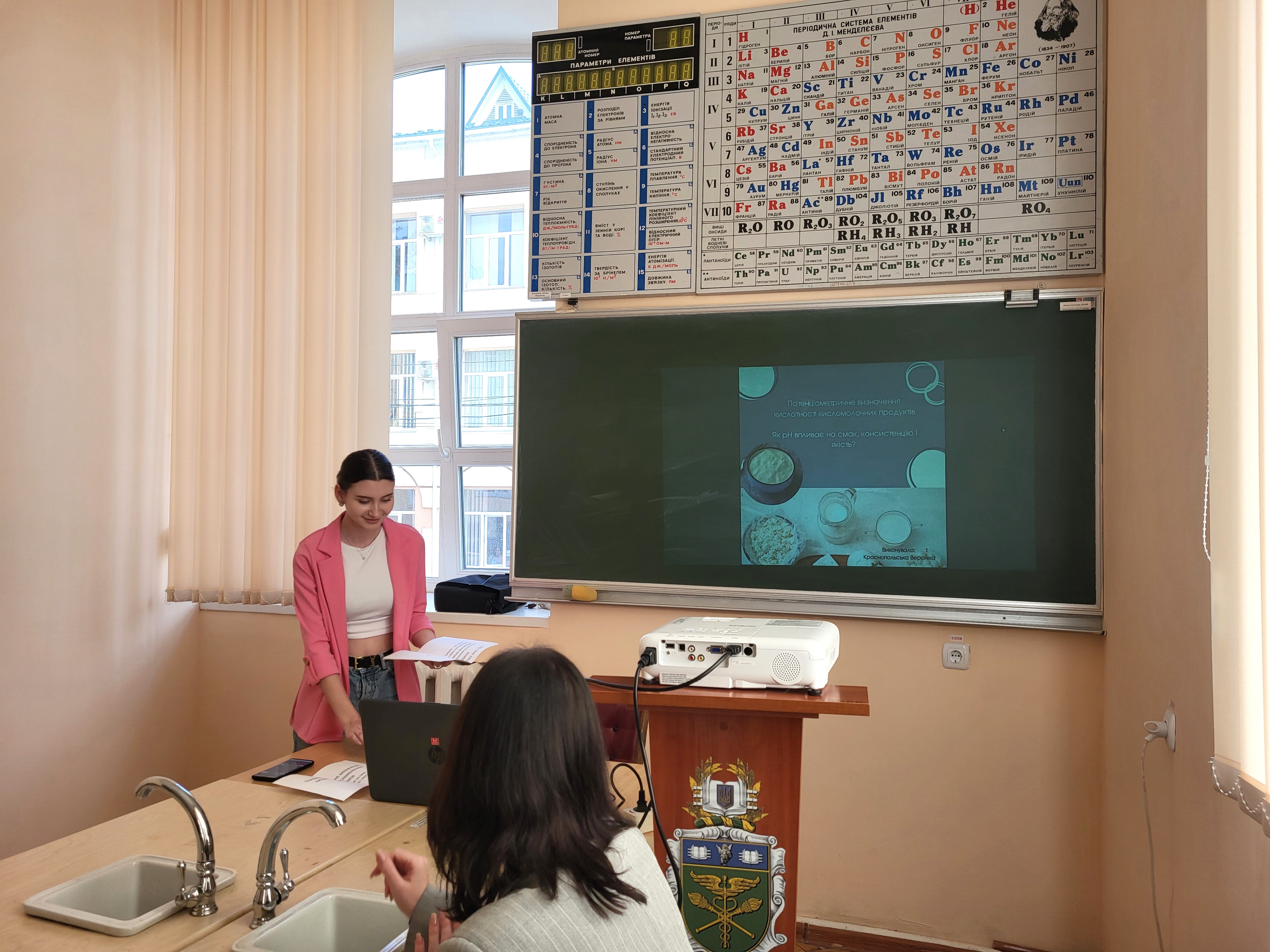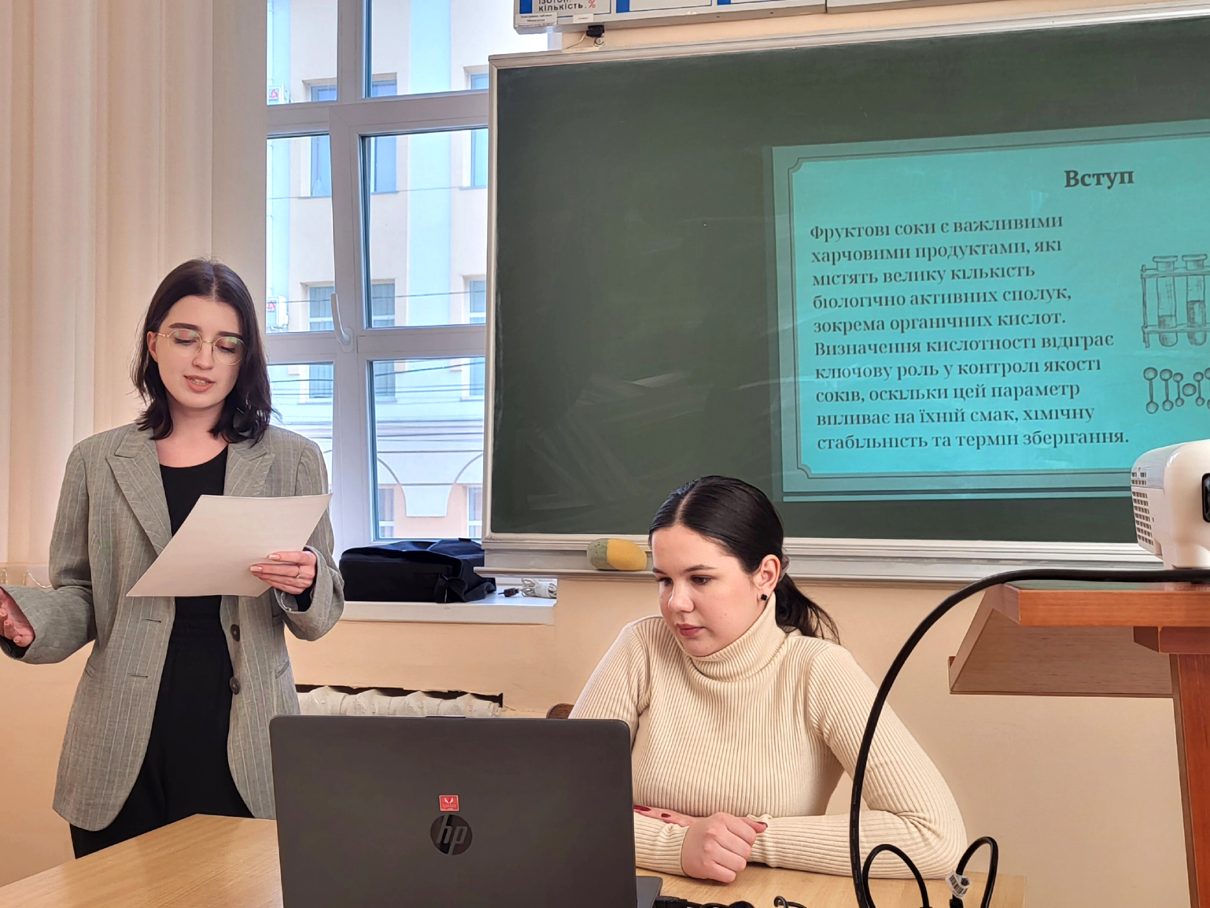 Проведено відкрите засідання студентського наукового гуртка «Фізико-хімічні методи дослідження сировини і матеріалів» на тему «Методи визначення якості харчових продуктів»