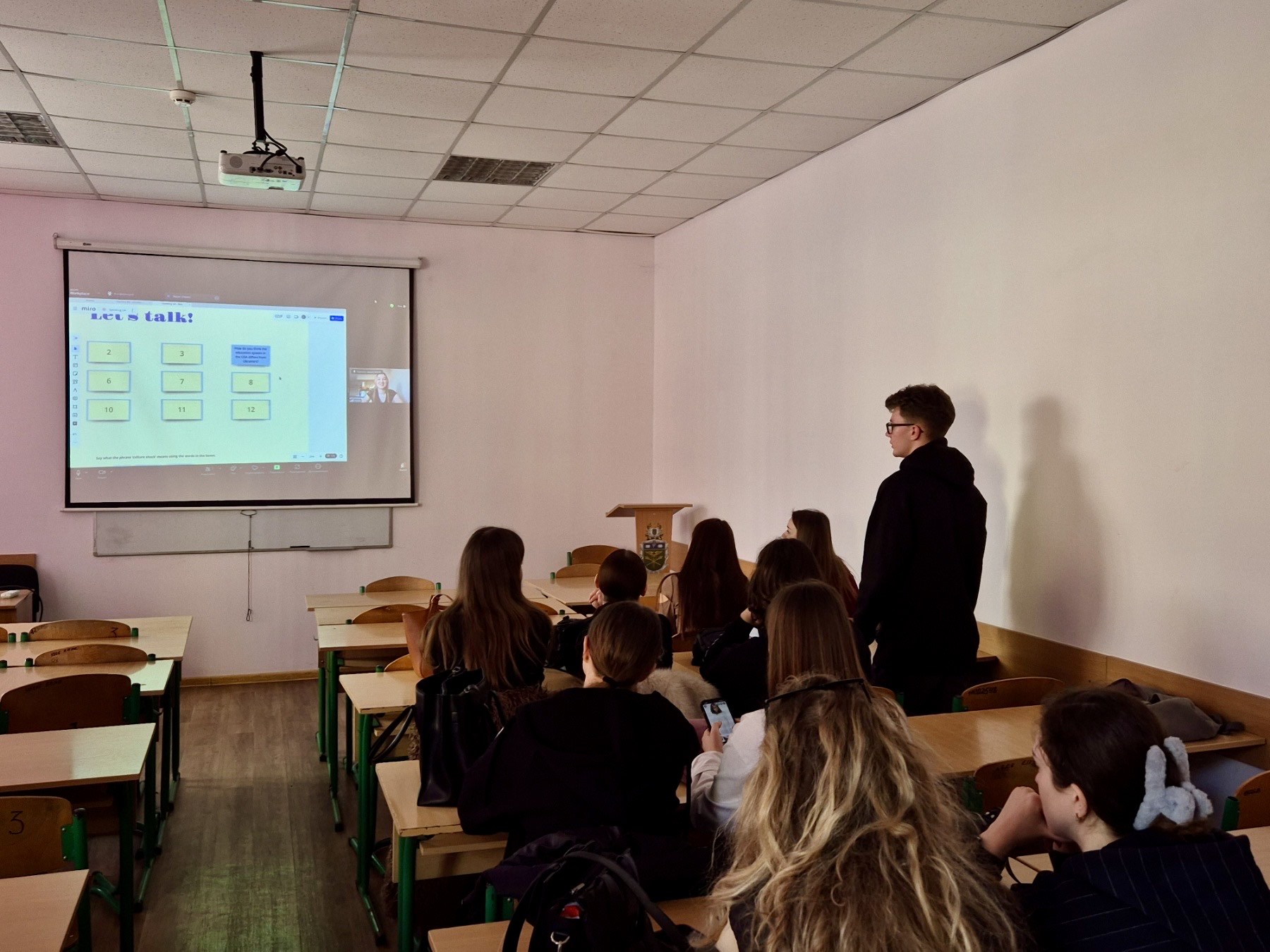 На заході були присутні здобувачі вищої освіти ОС «бакалавр» груп Ф-11д, Ф-21д та Ф-31д, а також викладачі кафедри іноземної філології та перекладу. Цього разу студенти мали змогу поспілкуватись з носієм мови Хеленою (США, штат Огайо), яка неймовірно цікаво та креативно розповіла про особливості працевлаштування в Сполучених Штатах, а також поділилася труднощами, з якими можуть зіткнутися молоді спеціалісти і шляхами їх подолання.