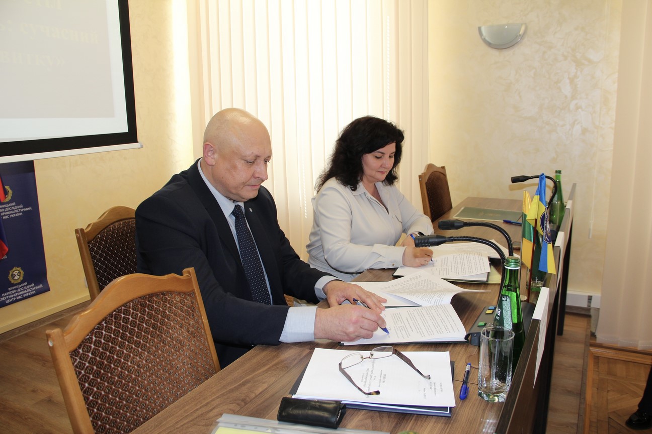 Під час засідання круглого столу відбулась урочиста церемонія підписання договору про партнерство і співпрацю між ВТЕІ ДТЕУ та НДЕКЦ МВС м. Вінниця. Зі сторони інституту договір підписала директор проф. Замкова Наталія, а зі сторони НДЕКЦ його директор Лайтер Микола.