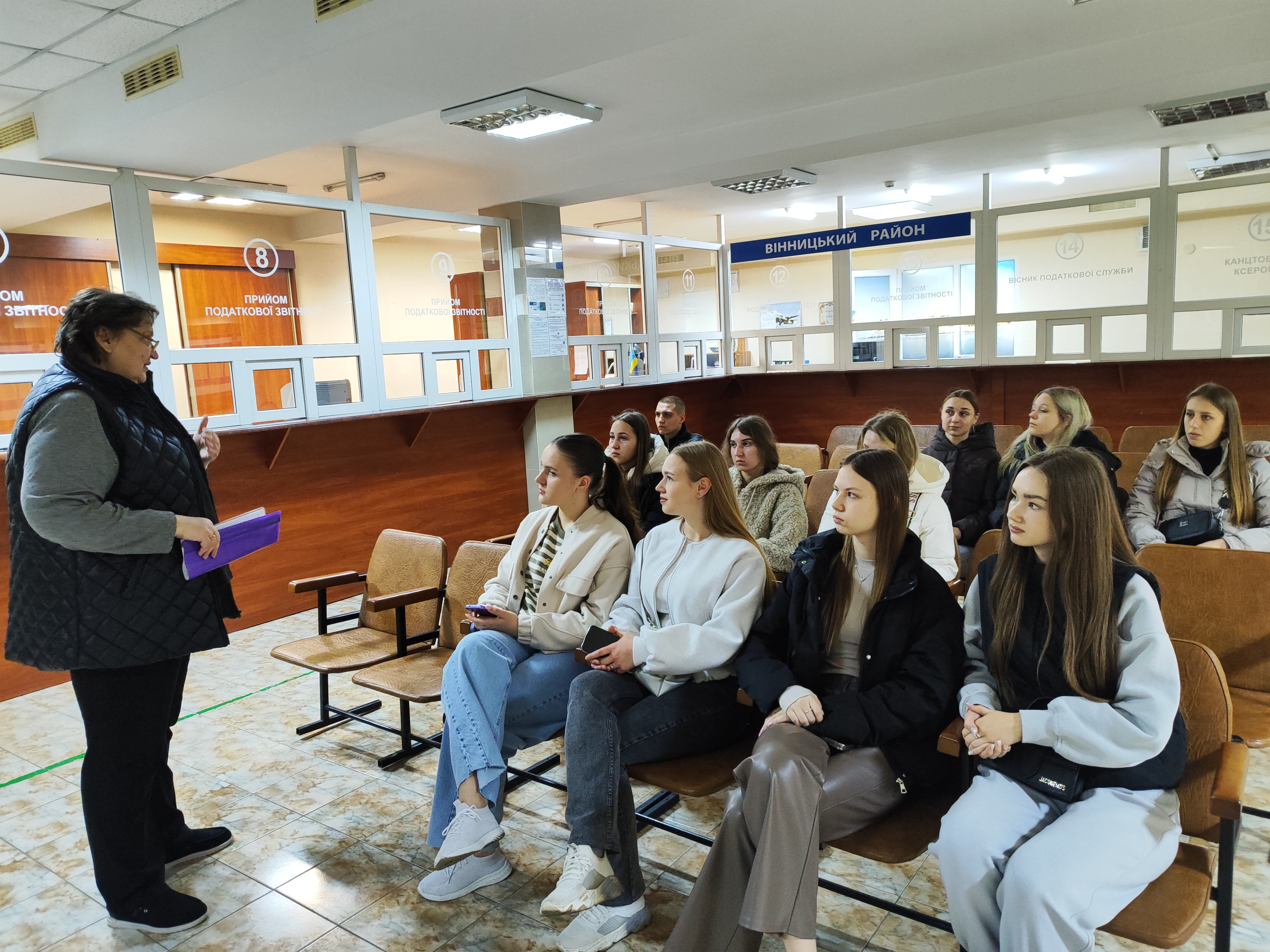 Спікер провела екскурсії для студентів 1 курсу спеціальності 071 «Облік і оподаткування» по залах Центру обслуговування платників податків: надання адміністративних послуг, прийому податкової звітності та вхідної кореспонденції, обслуговування платників податків.