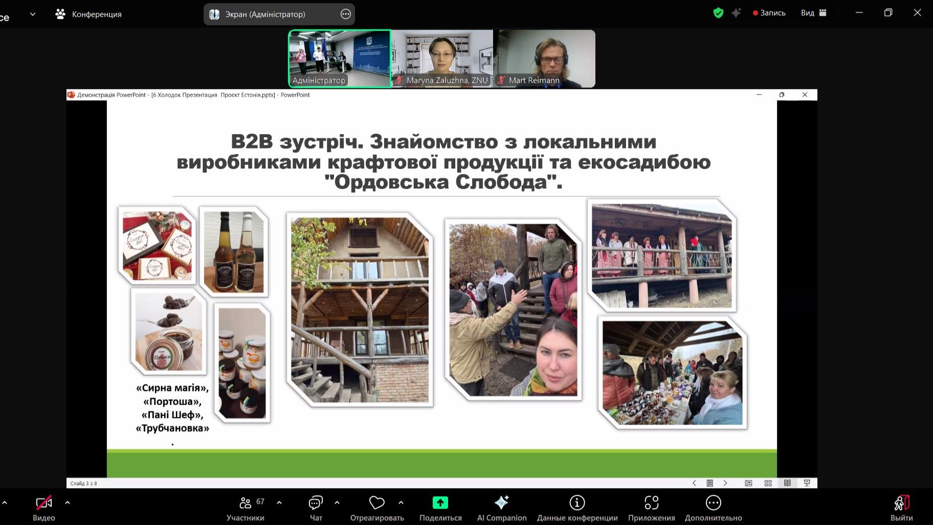 28 квітня 2025 року науково-педагогічні працівники кафедри туризму та готельно-ресторанної справи взяли участь у конференції «Партнерство як інструмент експорту локальних продуктів з сільських територій України», яка відбулася за підсумками виконання міжнародного проєкту «Створення культури партнерства та розвиток спільних місцевих продуктів для підвищення експортної спроможності малого бізнесу на прифронтових та прикордонних сільських територіях» за фінансової підтримки Естонського центру міжнародного розвитку.