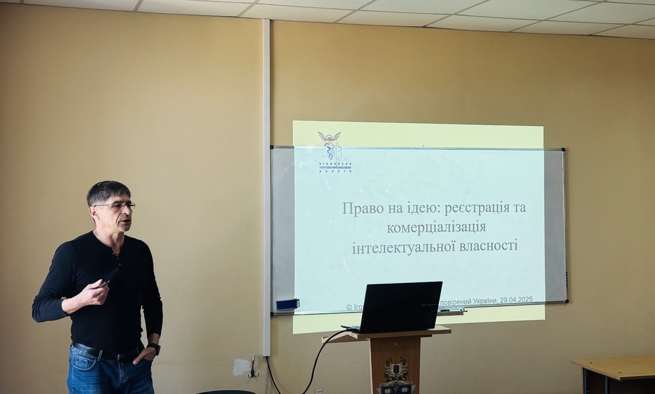 29 квітня 2025 року для студентів спеціальності «Право» була проведена гостьова лекція патентним повіреним України – Шевченком Ігорем Анатолійовичем на тему «Право на ідею: реєстрація та комерціалізація інтелектуальної власності».