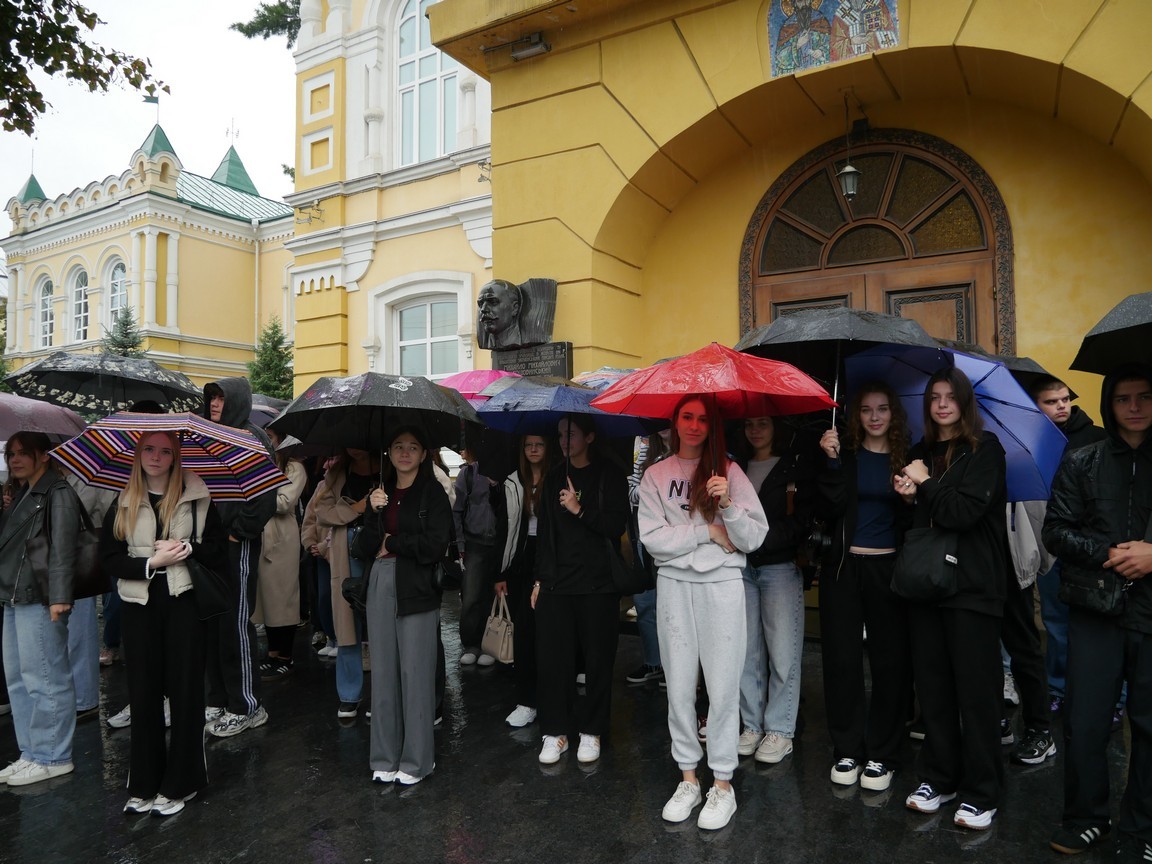 В інституті вже стало традицією до дня народження нашого видатного земляка вшановувати його пам'ять. З цієї нагоди адміністрація інституту, першокурсники та співробітники бібліотеки взяли участь у покладанні квітів до барельєфу М. Коцюбинського, що знаходиться на фасаді навчального корпусу №1 ВТЕІ ДТЕУ. Зі вступним словом виступила Алла Смотрицька, завідувач відділу обслуговування користувачів бібліотеки ВТЕІ.