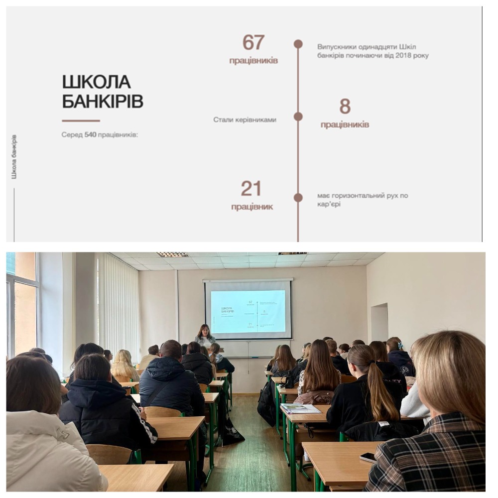 Здобувачі мали унікальну нагоду поспілкуватися з досвідченими фахівцями, які поділилися практичними знаннями про банківські послуги та перспективи кар’єри у фінансовій сфері.