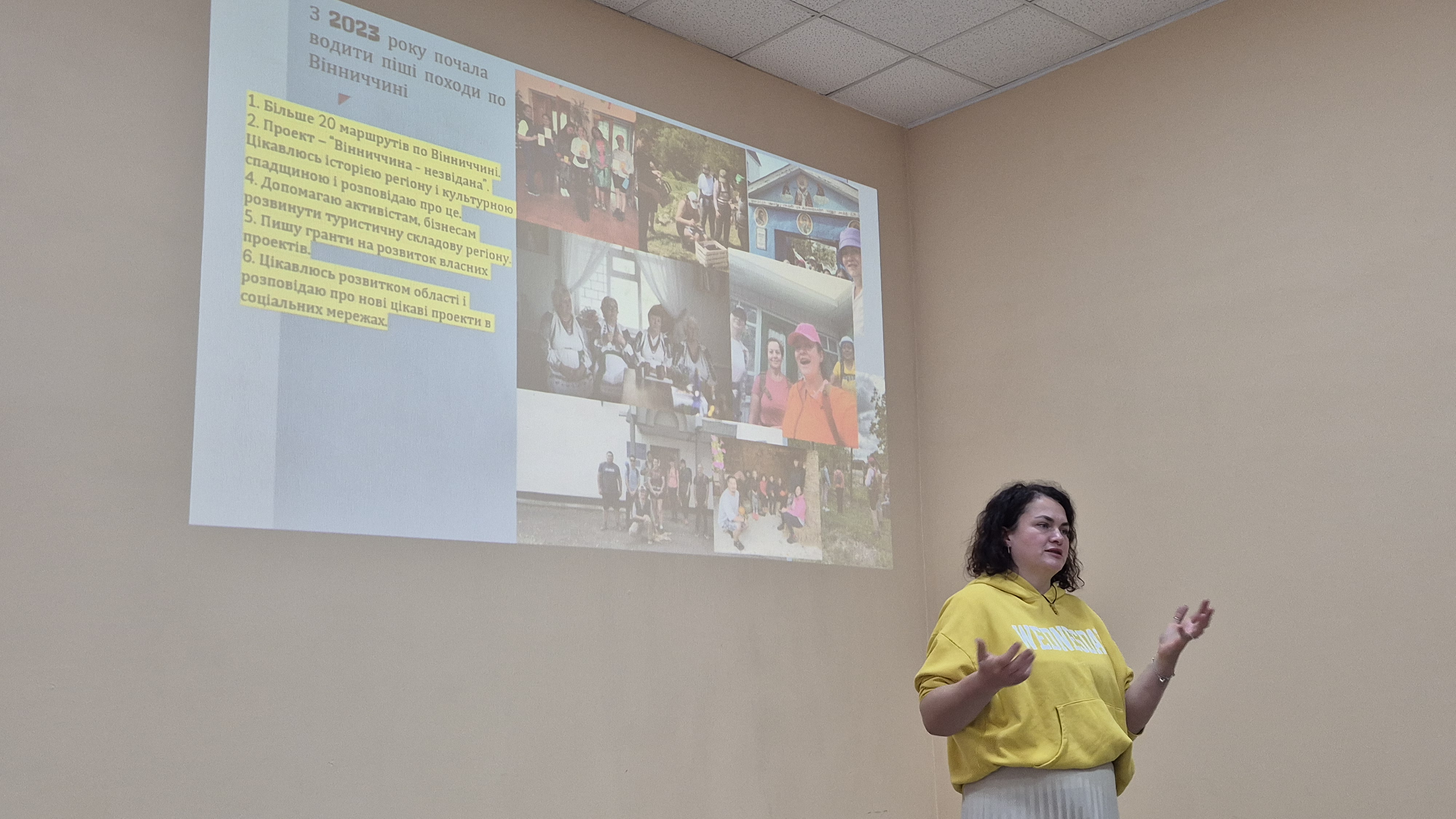 Пані Світлана розповіла про стан та тенденції розвитку хайкінгу в Україні та в Подільському регіоні, поділилася власним досвідом організації та проведення походів, в т. ч. за маршрутом Сamino Podolico. Увагу було приділено особливостям підготовки туристів до походу, а також розроблення маршрутів та керівництва походами керівника групи. Цікаво було почути про туристичні принади Вінниччини, які мало відомі широкому загалу, але доступні до відвідування усім, хто проходить Подільським шляхом святого Якова. Рухаючись цим чи іншим маршрутом Вінниччиною, туристи мають унікальну можливість ближче ознайомитися з невідомими їм природними та історико-культурними об’єктами і таким чином відкрити для себе красу та велич рідного регіону.