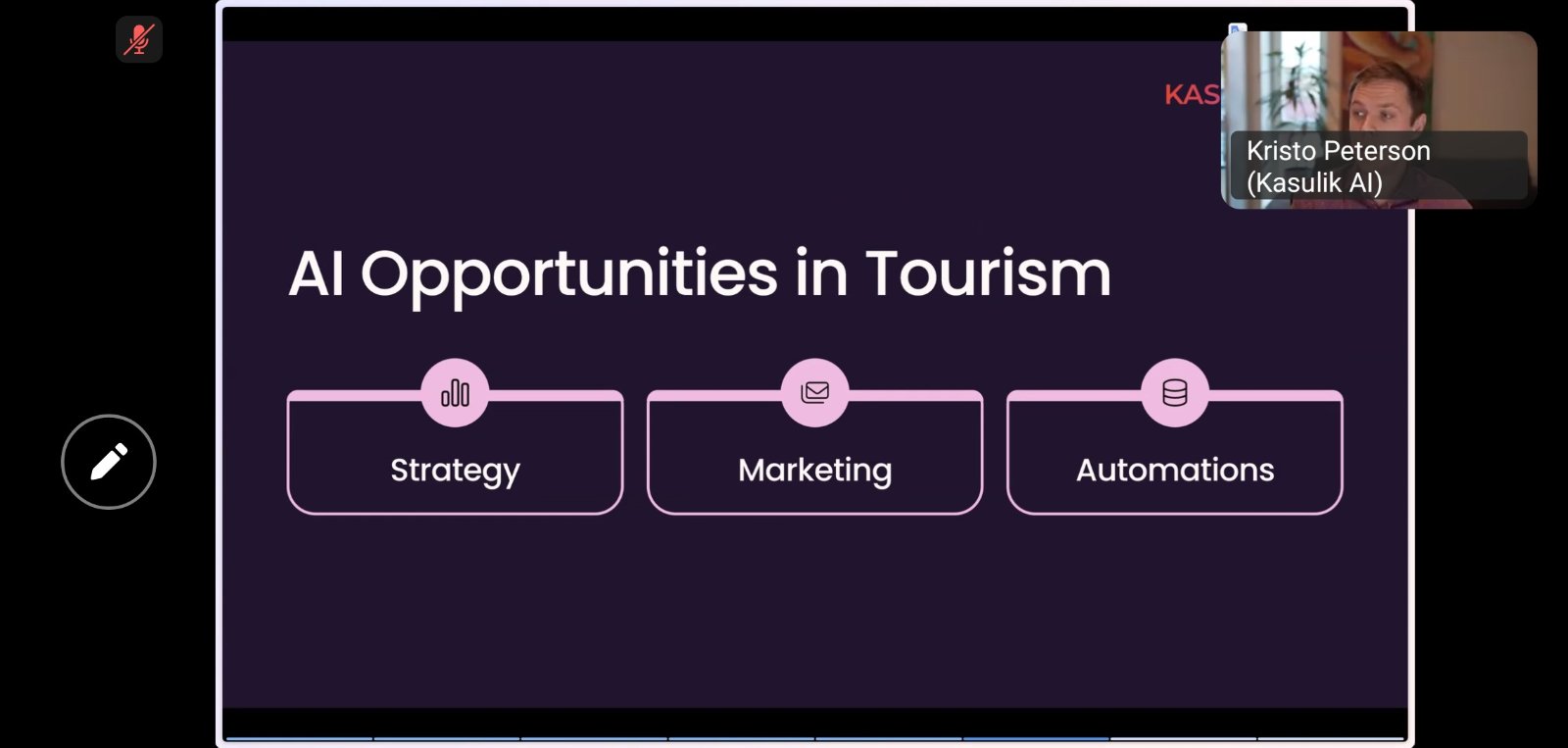 У якості спікерів на вебінарі виступили стратег і тренер зі штучного інтелекту Крісто Петерсон, директор Асоціації «Austrian Farm Holidays» Ганс Ембахер, туристичний гід у Парижі Алехандра Саенс де Мієра, виноробка та підприємниця з Естонії Тііна Куулер, операційна менеджерка та керівниця якості у Sweet Accommodations з Іспанії Андреа Сантьяго.