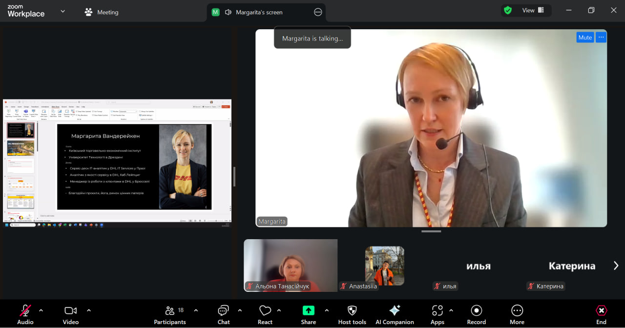 21 жовтня 2025 року відбулося засідання Бізнес-школи ВТЕІ ДТЕУ за участю Маргарити Вандерейкен - працівниці відділу European Customer Operations Group DHL Express Europe.