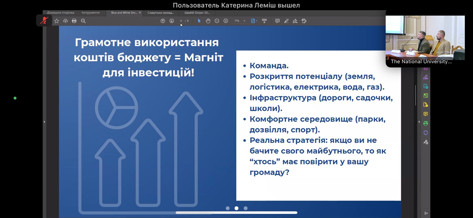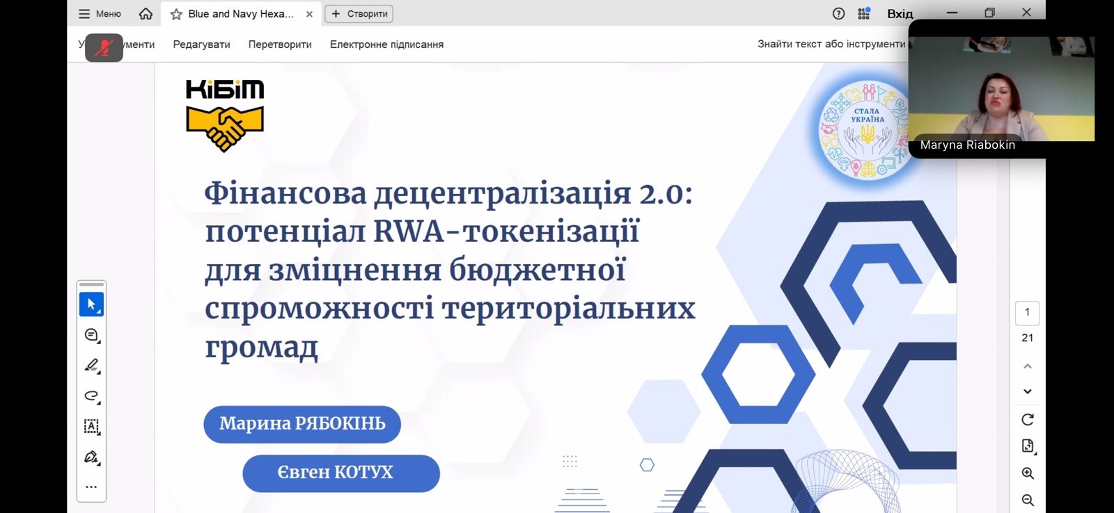 Також розглядалися новітні напрямки, зокрема, «зелені» фінанси як інструмент сталого розвитку та особливості фінансування, координації й управління ветеранською політикою на місцевому рівні.