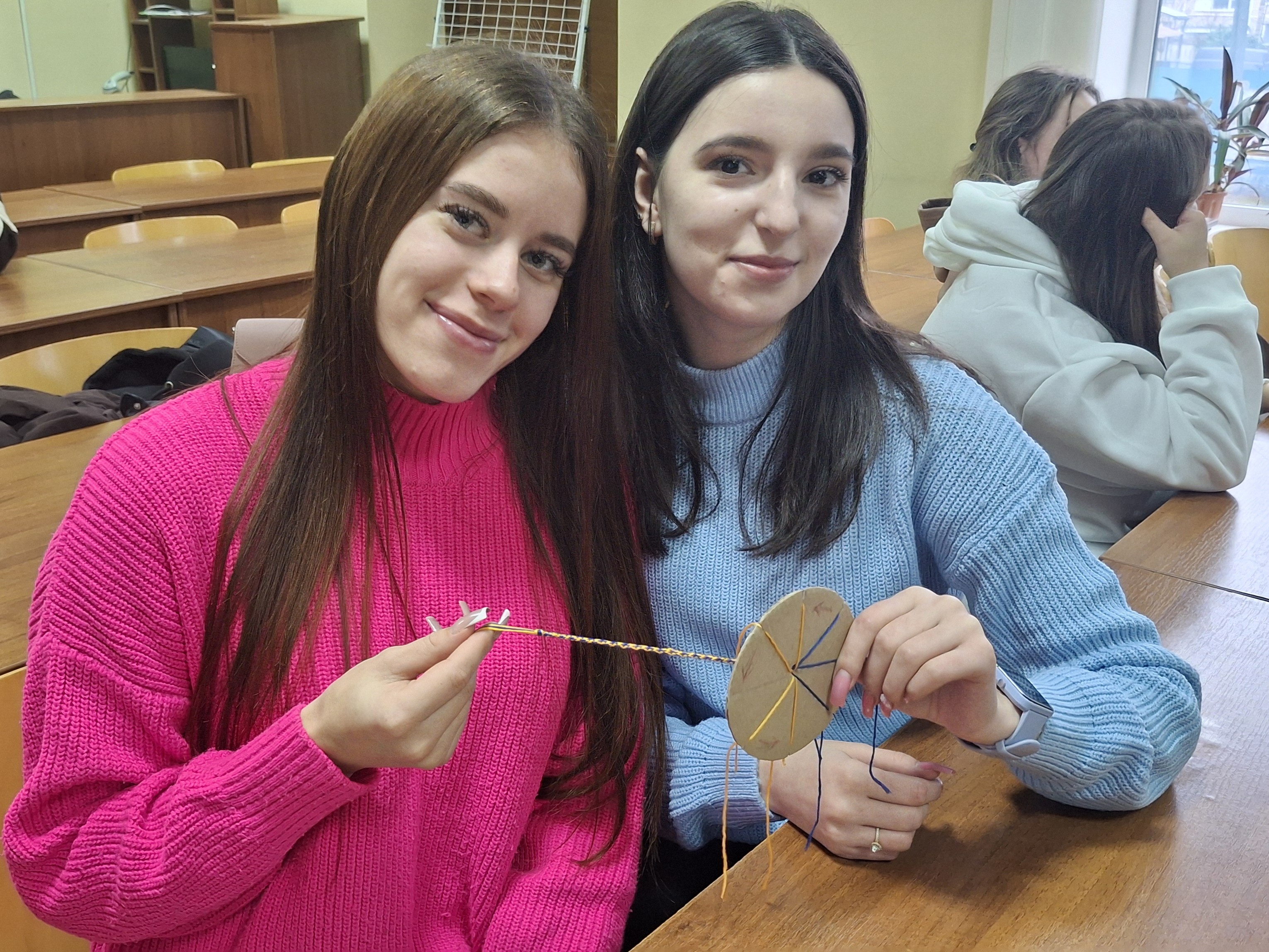Учасники майстер-класу дізналися, що куміхімо – стародавнє ремесло, складні схеми та прийоми якого передавались в усній формі членами сімей та гільдій, щоб зберегти їх у таємниці. Майстриня наголосила на тому, що куміхімо, сплетені з ниток певних кольорів, вважалися оберегами і талісманами, що приносять удачу. А сам процес плетіння заряджає позитивною енергією. Тому для створення браслетів-оберегів були обрані жовтий і синій кольори. До процесу плетіння браслетів студенти поставилися сумлінно, захід пройшов у теплій та дружній атмосфері.