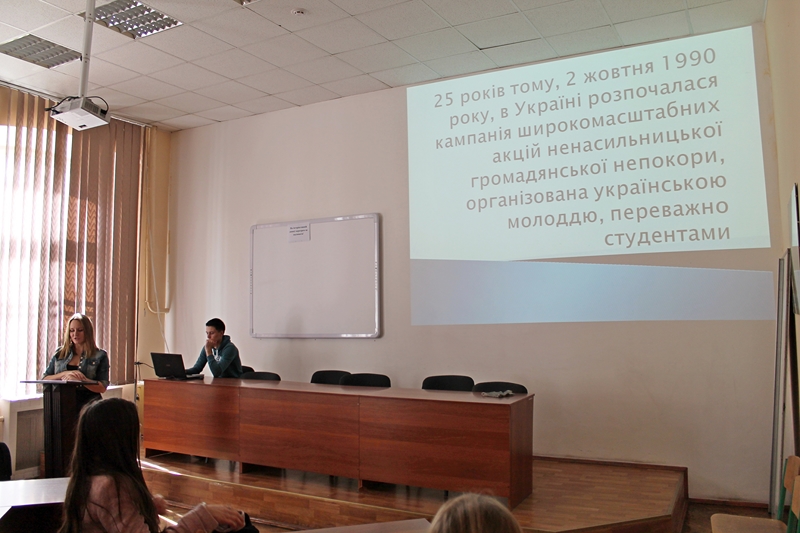 Голова Ради студентського самоврядування факультету Тамара Невеличко представила презентацію подій періоду «Революції на граніті», в якій було зазначено, що зазначені події повністю організовані силами студентства і не мали на той час аналогів у всій Європі. Прямим наслідком протестів була відставка голови Ради Міністрів УРСР Віталія Масола та виконання низки інших вимог мітингувальників. Після чого відбулася обговорення вказаної події здобувачами вищої освіти. Учасники круглого столу прийшли до консолідованого висновку, що «Революція на граніті» відіграли важливу роль у становленні незалежності України.