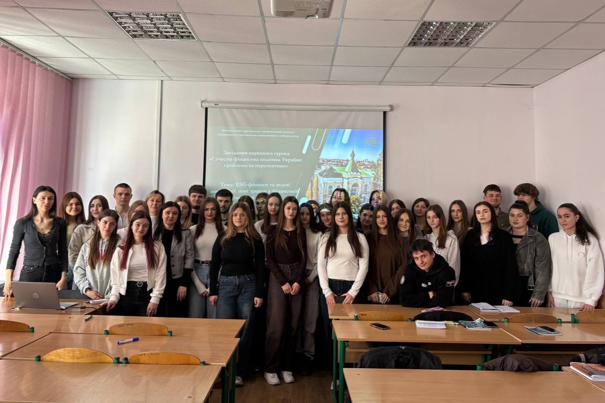 10 березня 2026 року в рамках XІV Фестивалю студентської науки кафедрою фінансів було проведено відкрите засідання наукового гуртка «Сучасна фінансова політика України: проблеми та перспективи» на тему «ESG-фінанси та зелені інвестиції: нові тренди у фінансовій політиці України».