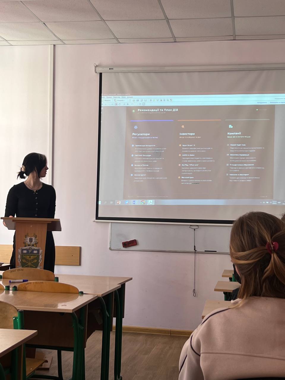Участь в науковому заході взяли здобувачі вищої освіти груп ФБСФ-21д,22д,11дсп та науково-педагогічні працівники кафедри. Члени наукового гуртка та запрошені здобуваачі вищої освіти виступили з актуальними темами, зокрема, Зелені фінанси у післявоєнному відновленні економіки України, Ринок зелених облігацій в Україні: перспективи розвитку, Муніципальні зелені облігації як інструмент розвитку громад, ESG-критерії у кредитній політиці українських банків, Сталі інвестиційні фонди: світовий досвід і можливості для України, Кліматичні ризики як фактор фінансової стабільності, Зелені інвестиції в енергетичну трансформацію України. До активної участі в обговоренні долучились й інші члени гуртка. Світові фінансові інституції дедалі частіше прив'язують надання фінансування до дотримання ESG-стандартів. Для України це означає, що Plan Ukraine та інші програми відновлення будуть базуватися на принципах «Build Back Better» — відбудові з використанням енергоефективних та екологічних технологій.