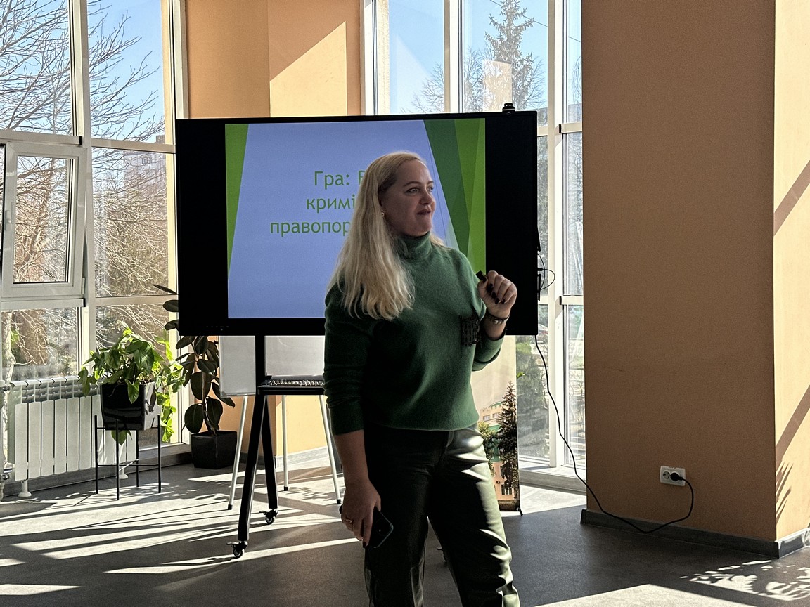 Під час зустрічі Наталія Костюк ознайомила юних правознавців із різноманіттям юридичних професій, поділилася власним професійним досвідом, розповіла про необхідні професійні якості правника та перспективи розвитку юридичної кар’єри.