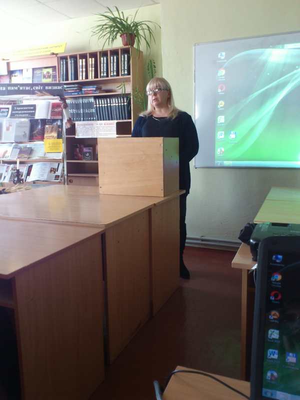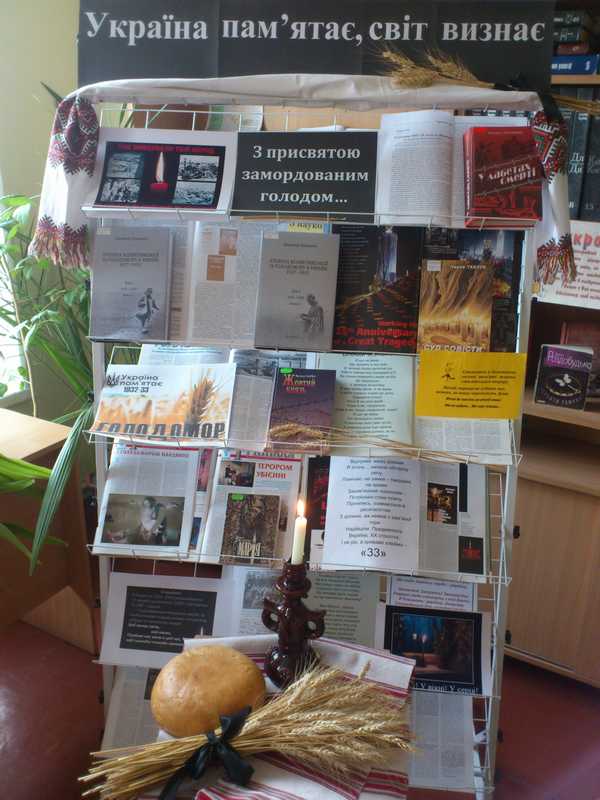 Вшановуючи пам’ять мільйонів наших співвітчизників знищених більшовицькою владою шляхом терору та штучного голоду, працівники бібліотеки підготували книжково-ілюстративну виставку «Україна пам’ятає, світ визнає», на якій представлені книги, документи, що розкривають трагічні сторінки історії України та Подільського краю, пов’язані зі страшним голодомором 1932-1933р.р. Присутнім було продемонстровано документально-публіцистичний фільм «Голодомор». Перегляд фільму відбувався у цілковитій тиші і нікого не залишив байдужим. Деякі кадри стали шокуючими для глядачів, які народилися вже у незалежній Україні. Захід проходив у рамках акції "Запали свічку