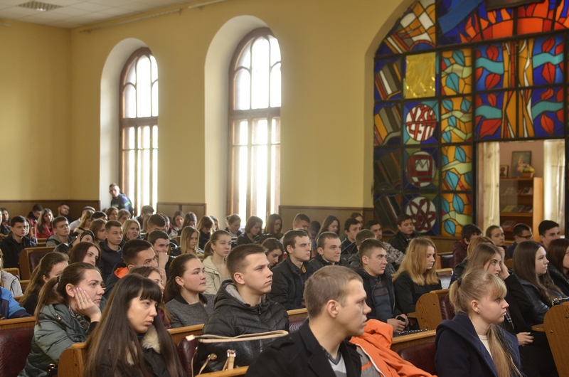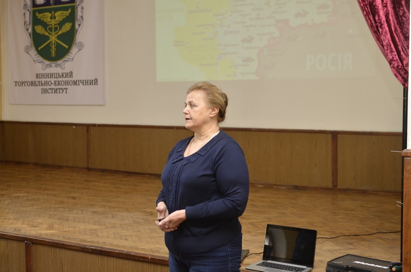 31 березня перед студентами виступила відомий волонтер Юлія Вотчер, президент ГО «МОЛЬФАР», яка не зважаючи на небезпеку та обстріли доставляє гуманітарну допомогу в гарячі точки зони АТО. Відбулася бесіда з показом фотографій. За кожною фотографією студенти побачили людську долю.