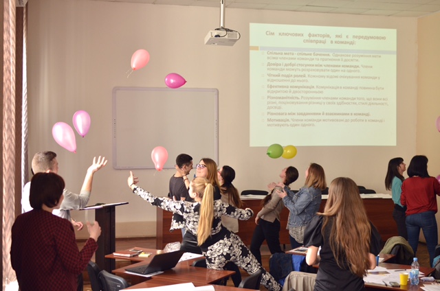 До участі в тренінгу на конкурсній основі було запрошено 18 здобувачів 1-6 курсів усіх спеціальностей, які вчасно подали вмотивовану заявку на участь. Мета тренінгу полягала у визначенні сутності активності, лідерства, специфіки командної роботи. Серед вправ, які використовувалися на тренінгу найбільше студентам запам’яталися: мозковий штурм «Хто така Я - особистість активної дії?», «Хто такий лідер?», «Що таке лідерство?»; вправа «Асоціативний ланцюжок»; експрес-діагностика лідерських рис; вправа «Займи позицію»; емоційне піднесення та високу активність здобувачів викликала вправа «Будинок, дерево, собака». Друга частина тренінгу була присвячена командній роботі. Після мозкового штурму «Сутнісні ознаки команди, командна робота», активні студенти змагалися у вправі «Гаряче повітря», «Бджіл краще ловити на мед», де могли проаналізувати використані власні методи досягнення цілей, обговорити ефективність різних управлінських навичок, методів запровадження змін, фокусуючи увагу на корисності дій без примусу, за умов поваги до інших, творчого сприяння змінам, відкритості до нестандартних ідей!