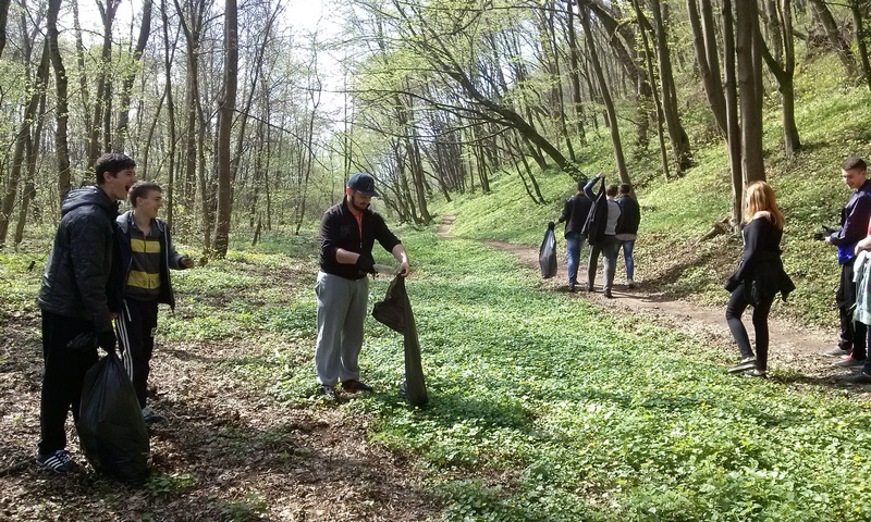 От і в цьому році 12 квітня 100 студентів з трьох факультетів на чолі з представником муніципальної поліції прибирали лісовий масив над р. Південний Буг.