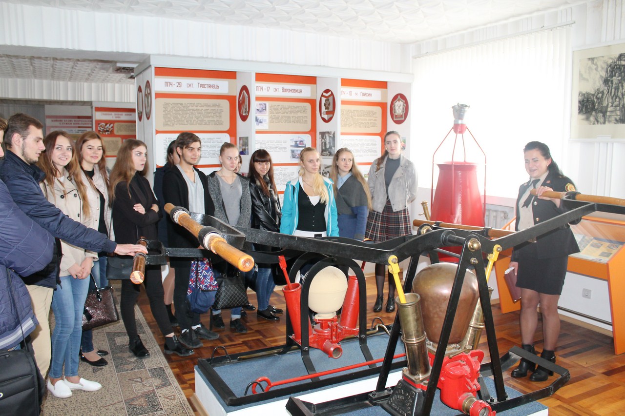 04 жовтня 2016 року студенти другого курсу спеціальності «Право» відвідали музей пожежно-рятувальної служби ГУ ДСНС України у Вінницькій області. Розпочалася екскурсія у світ історії служби «101» з розповіді про героїв, які пожертвували своїми життями під час ліквідації аварії на Чорнобильській атомній станції. Студенти під час екскурсії дізнались про діяльність пожежно-рятувальної служби Вінниччини, її історію та сьогодення. У виставкових залах побачили чимало цікавої та повчальної інформації про самовіддану, героїчну професію рятувальника. Студенти мали можливість оглянути засоби гасіння пожежі та пожежно-технічне обладнання, яке було на озброєнні пожежників у минулі століття. Побачили експонати кінно-бочковий хід та старовинні пожежні насоси, які збереглися до наших часів. Одна із експозицій музею присвячена пожежній безпеці та приладам, що допомагають людям запобігати загоранням, як на великих підприємствах, так і в побуті.