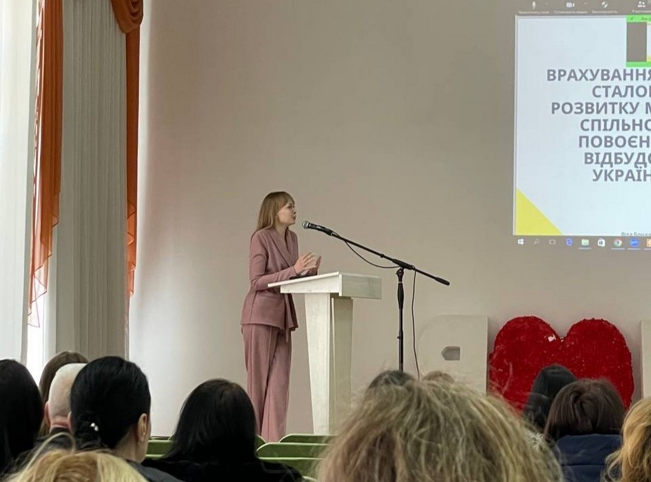 Соціальне підприємництво як інструмент розвитку громад в умовах подолання воєнних викликів. Доповідачка: Ірина Семенюк, кандидатка економічних наук, доцентка кафедри менеджменту та адміністрування ВТЕІ ДТЕУ, керівник Центру грантових проєктів, керівник ГО «Можливості. Сталий розвиток. Підприємництво Україна». Врахування цілей сталого розвитку міст та спільнот у повоєнній відбудові України. Доповідачка: Віта Бондар, асистент кафедри менеджменту та адміністрування ВТЕІ ДТЕУ, аспірантка кафедри публічного управління та адміністрування ДТЕУ, заступник голови правління ГО «Лабораторія суспільних змін».
