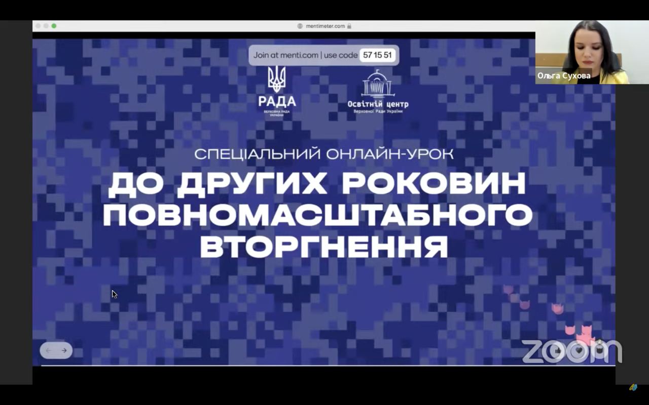 З метою національно-патріотичного виховання студенти спеціальностей «Менеджмент», «Публічне управління та адміністрування», а також усі бажаючі долучилися до онлайн-уроку, приуроченого до других роковин повномасштабного вторгнення рф на територію України.